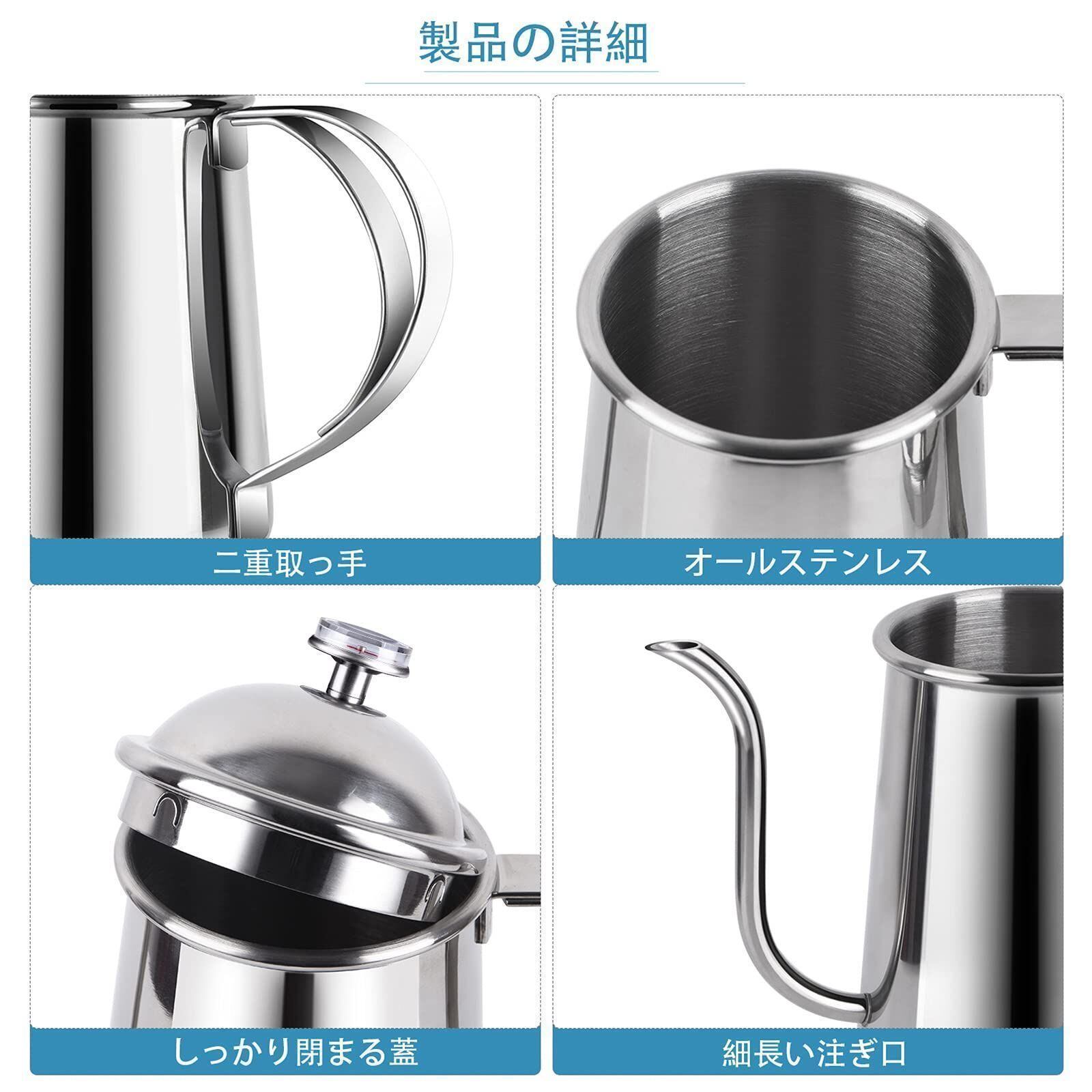 新品 I コーヒードリップポット ステンレス コーヒーポット ドリップケトル 650ML 細口ポット シルバー kkkceu
