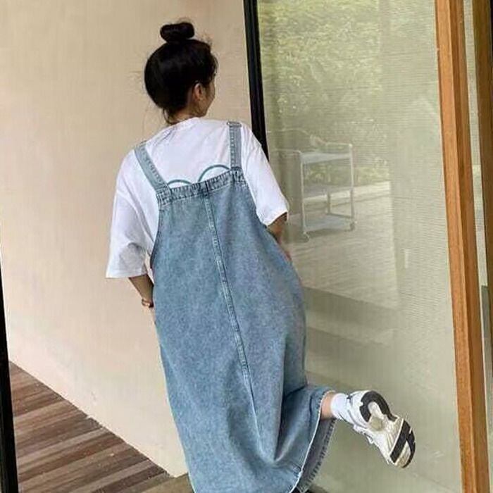 新品 デニムジャンパースカート デニムサロペット スカート ワンピース 体型カバー デニムワンピース デニム ポケット付き オールインワン カジュアル レイヤード レディース 無地 重ね着 着回し kkklwj