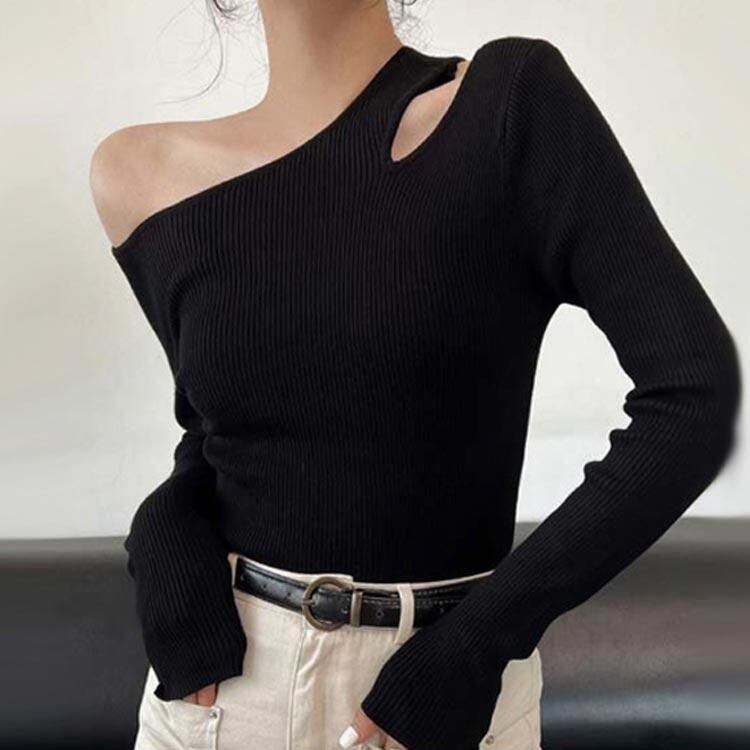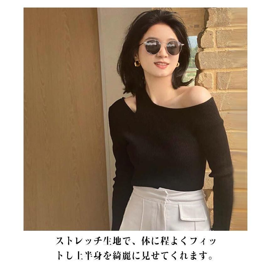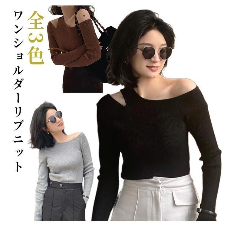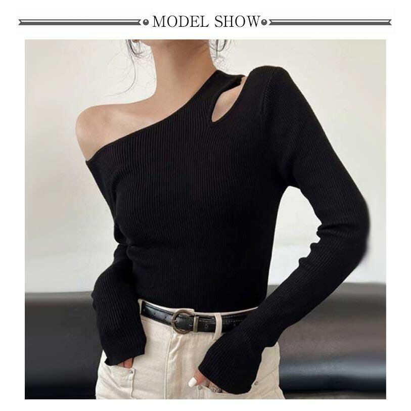 新品 トップス ワンショルダー ニットプルオーバー ニット ニットソー ワンショルダー 細見え オフショル 長袖 セーター トップス リブニット オ kkknqv