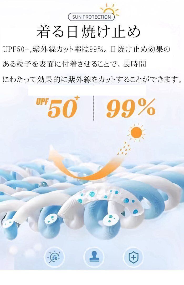 【着る日焼け止め】UPF50+,紫外線カット率は99%。