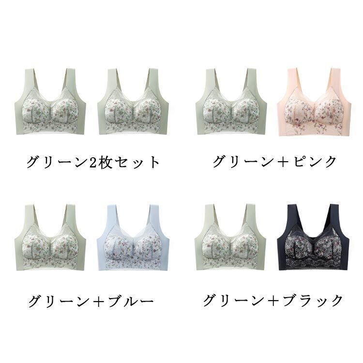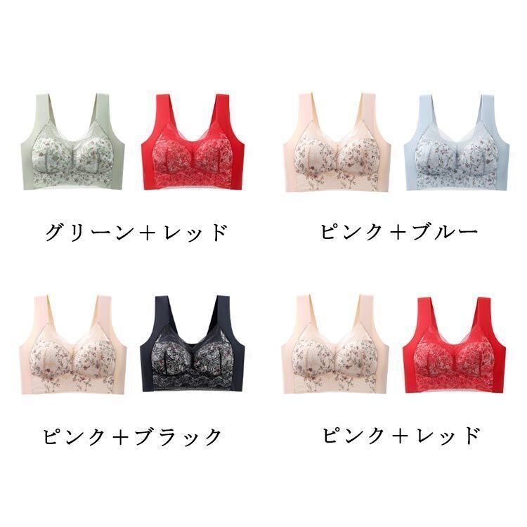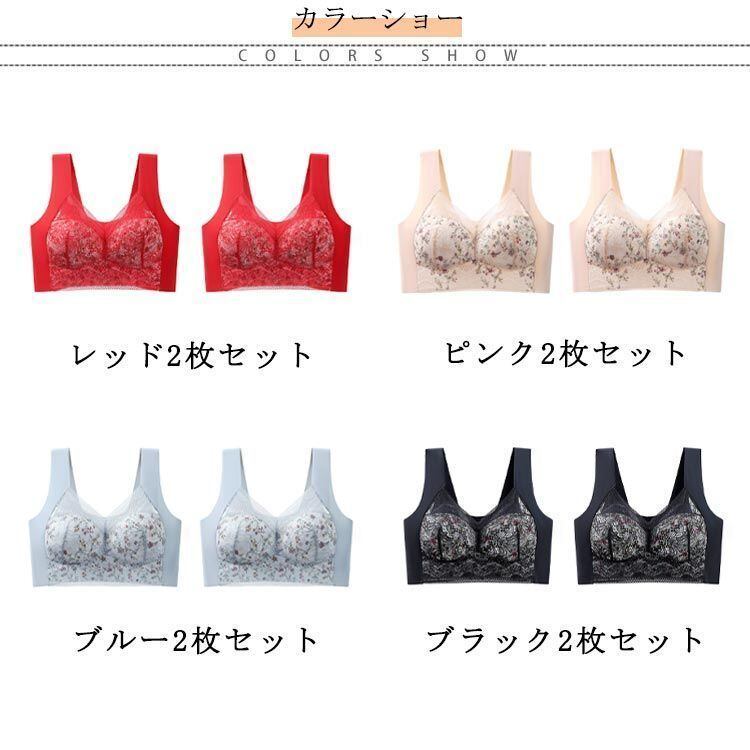 新品 胸を小さく見せるブラ 2枚セット 着痩せブラ 胸が小さく見えるブラ フルカップ 大きな胸を小さく見せるブラ 花柄 レース ノーワイヤーブラジャー 脇高 設計 脇肉 背中 スッキリ 補正 補正下着 イン kkkugg