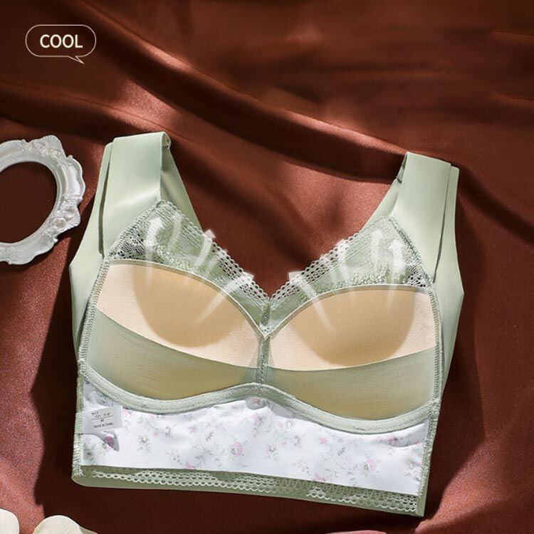 バスト全体を覆うレースがボリュームを抑えつつ、気になる谷間を徹底ガード。