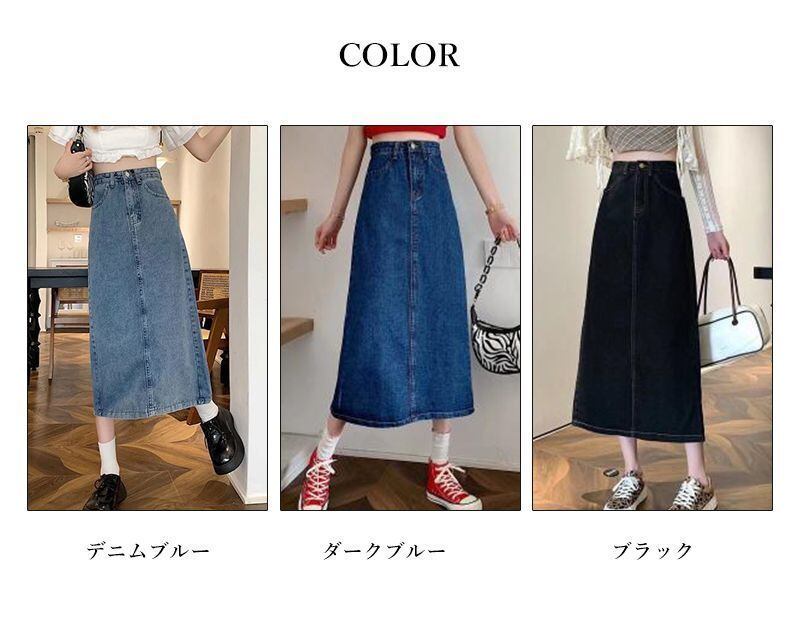 新品 デニムスカート レディース タイトスカート ロングスカート 薄手 ロング丈 バックスリット ボトムス きれいめ 可愛い お洒落 無地 カジュアル シンプル フェミニン ガーリー ストリート アメカジ レトロ デイリー kkkqaa