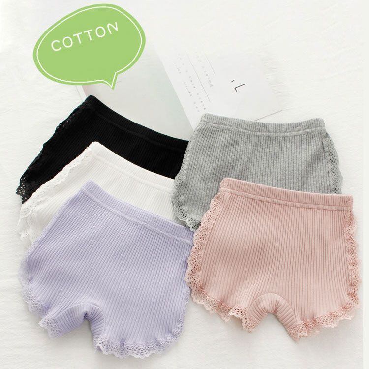 【5枚セット】レース付きのかわいいリブオーバーパンツ。制服のスカートの下に隠れ3分丈スパッツ♪