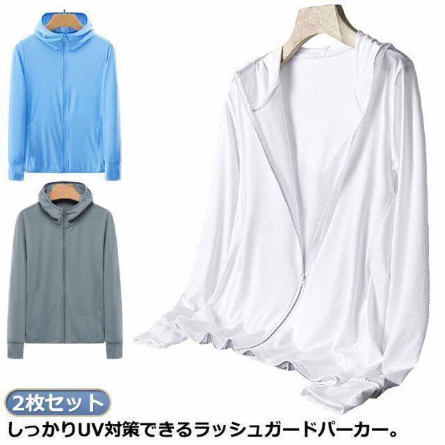 新品 涼感素材 ラッシュガード パーカー uvカット 2枚セット パーカー 指穴付き 日焼け防止 羽織り 長袖 大きいサイズ ゆったり ひんやり 接触冷感 レディース メンズ 紫外線対策 日よけ kkkrsg
