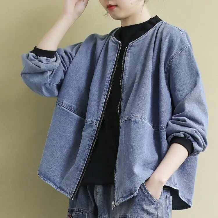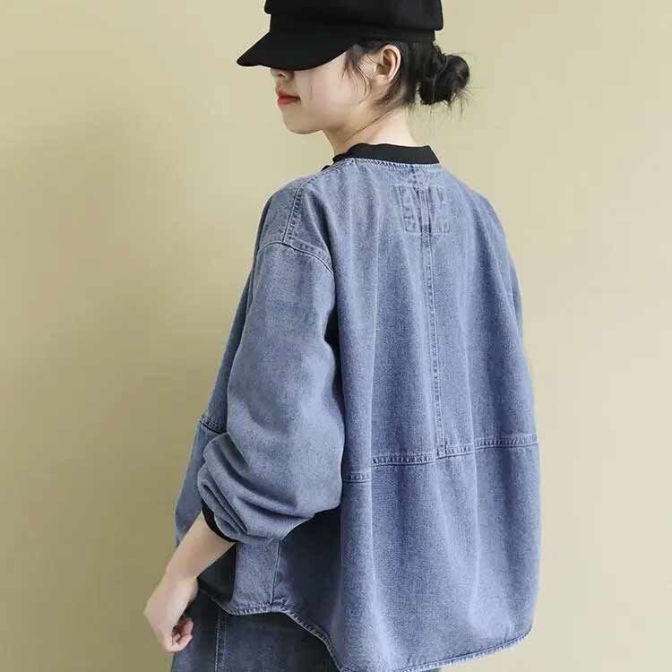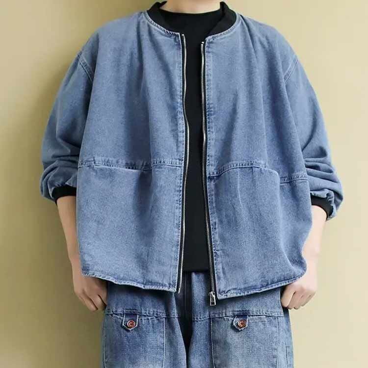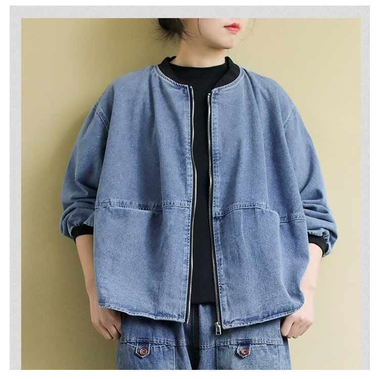 新品 ノーカラーデニムジャケット レディース ゆったり アウター ノーカラー ジャケット ジップアップ ショート丈 長袖 ブルゾン ジージャン 大きいサイズ 春服 カジュアル 20代 30代 40代 50代 kkkagb