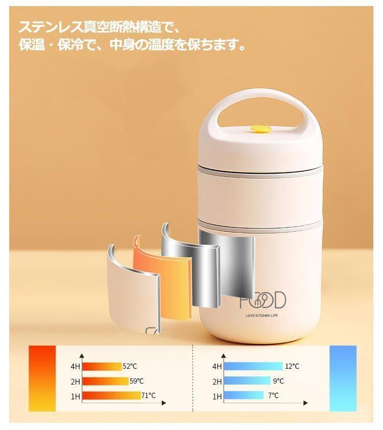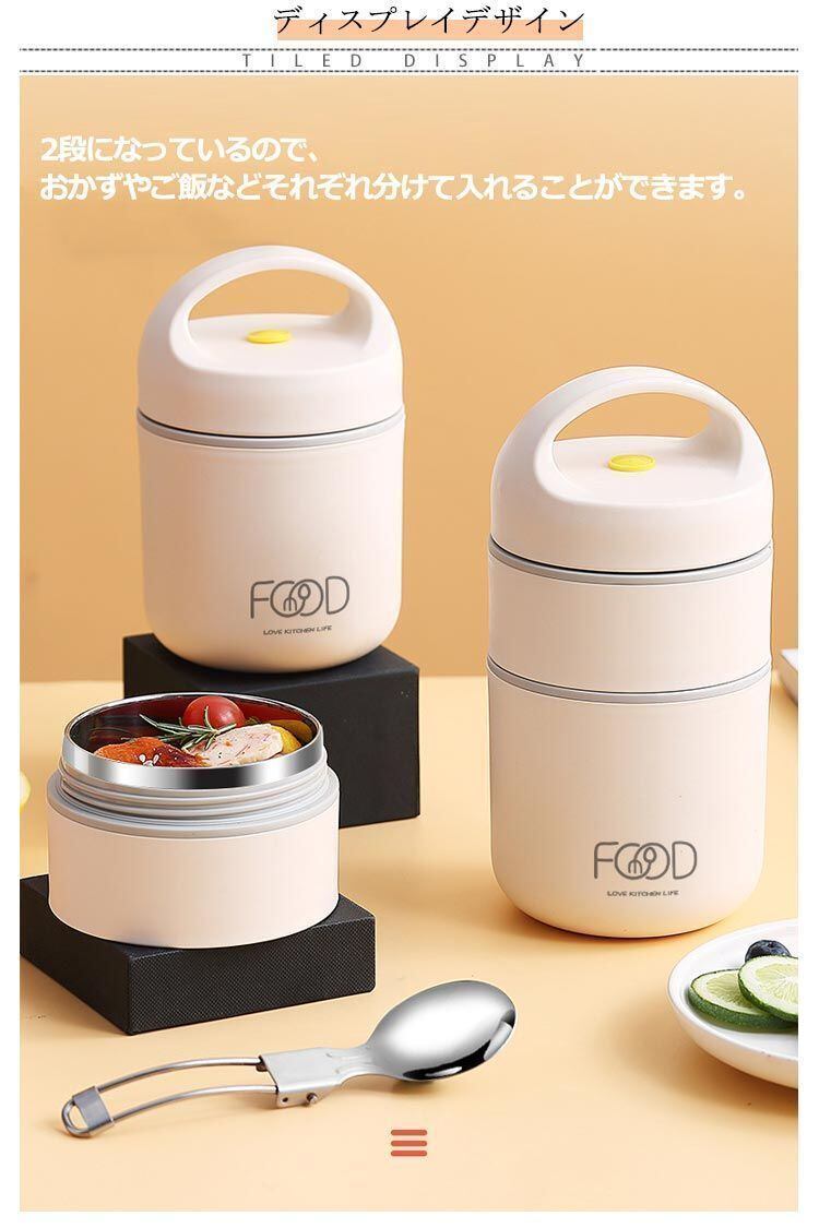 新品 ランチボックス 保温 弁当箱 680ml お弁当箱 2段 ランチジャー 保温ランチジャー 軽量 大容量 ステンレス 保温ランチボックス 真空断熱構造 折りたたみスプーン付き 女子 男子 女性 男性 お kkkfbc
