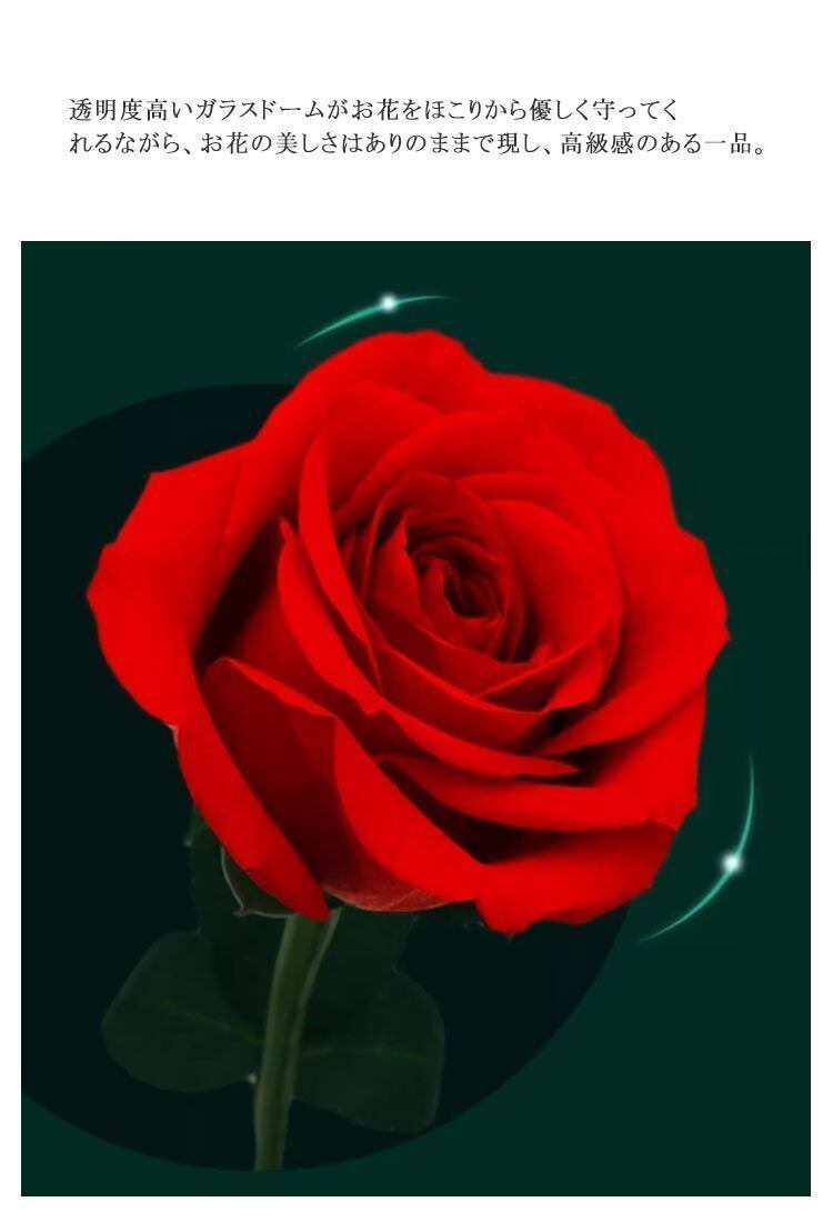 透明度高いガラスドームがお花をほこりから優しく守ってくれるながら、お花の美しさはありのままで現し、高級感のある一品。