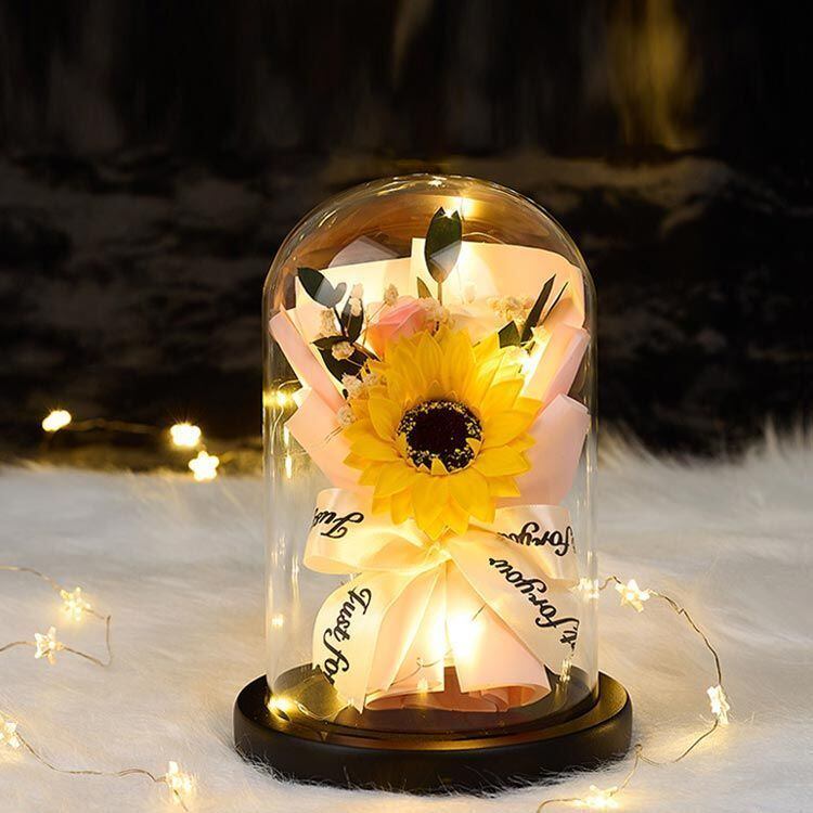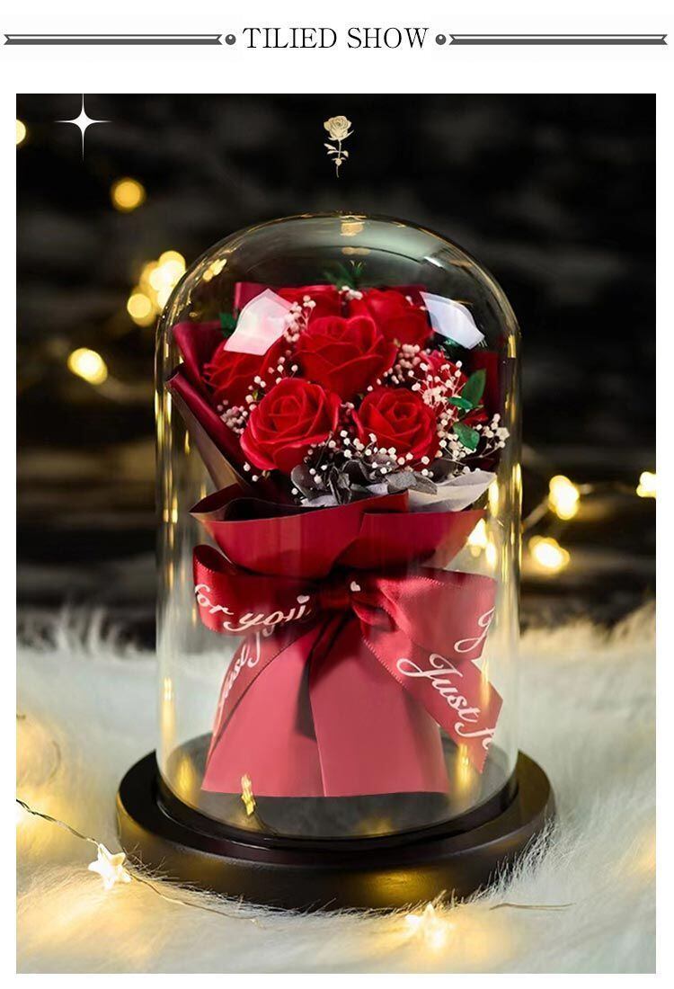 4点セット内容:ソープフラワー+ガラスドーム+ギフトバッグ+LEDイルミネーション