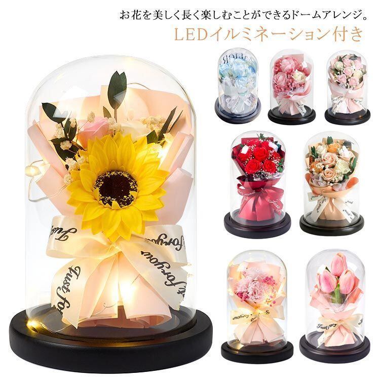 新品 そのまま飾れる♪ ソープフラワー シャボンドーム ドームアレンジ フラワーソープ ドーム型 花束 ブーケ シャボンフラワー LEDイルミネーション付き バラ 卒業式 入学式 結婚祝い カーネーション kkkilp