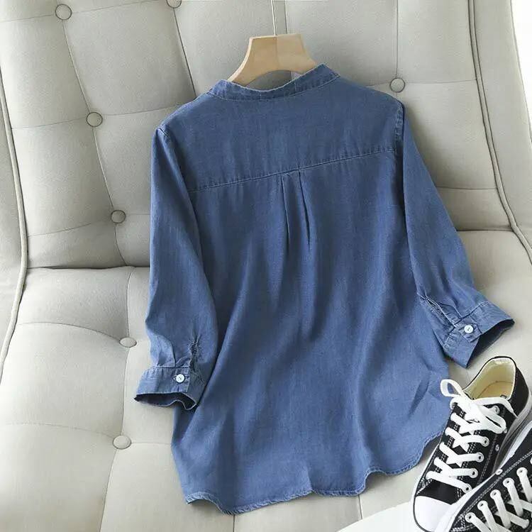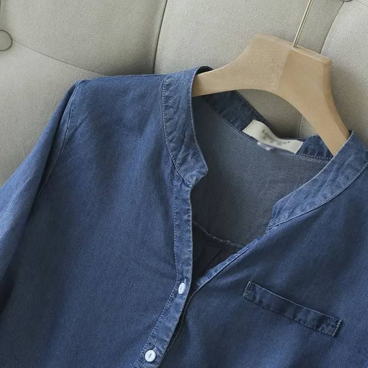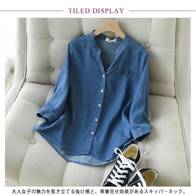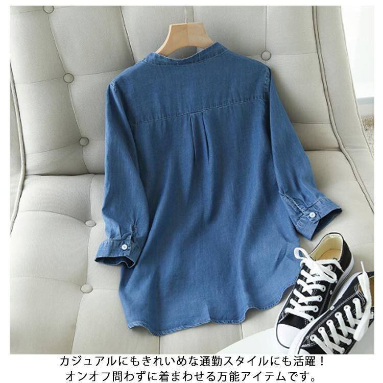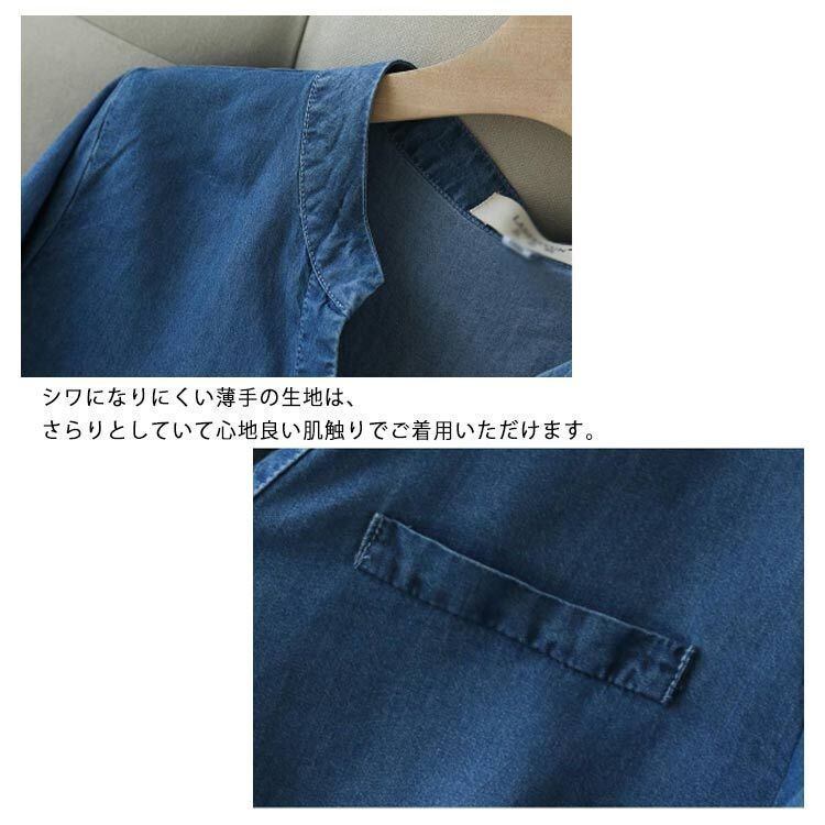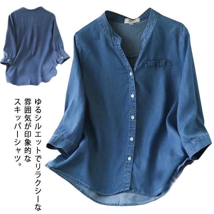 新品 シャツ デニム デニムシャツ レディース トップス スキッパーシャツ ブラウス 長袖 七分袖 スタンドカラー ラウンドテール Vネック ロング丈 チュニック シルエットシャツ 春 夏 秋 kkkber