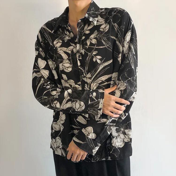 新品 メンズ 長袖シャツ かっこいい 柄シャツ 花柄 柄 派手 カジュアル ストリート ビッグシャツ 黒 ワイシャツ シャツ おしゃれ 長袖 大きいサイズ ゆったり 白 シャツ 総柄 総柄プリント 長そで kkkybh