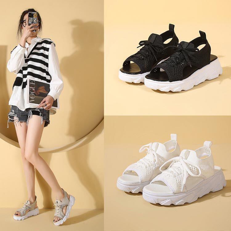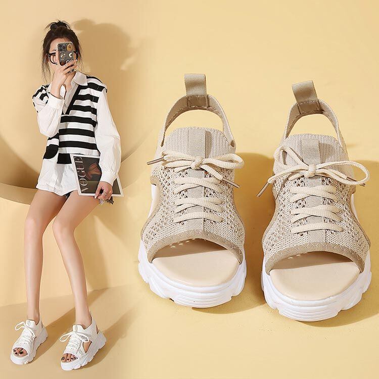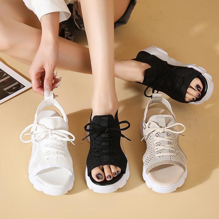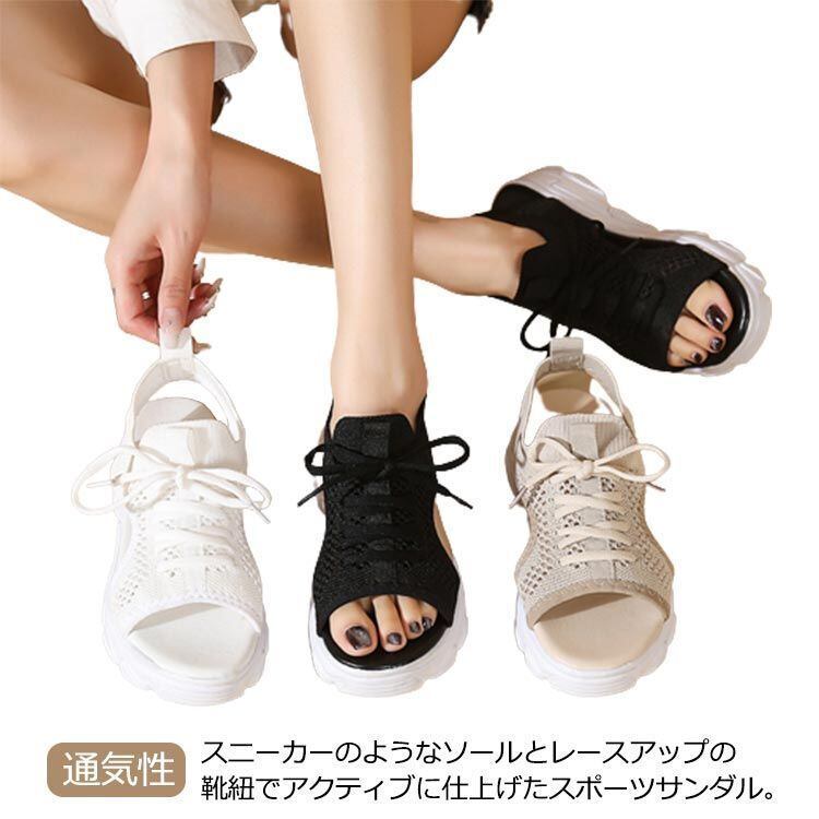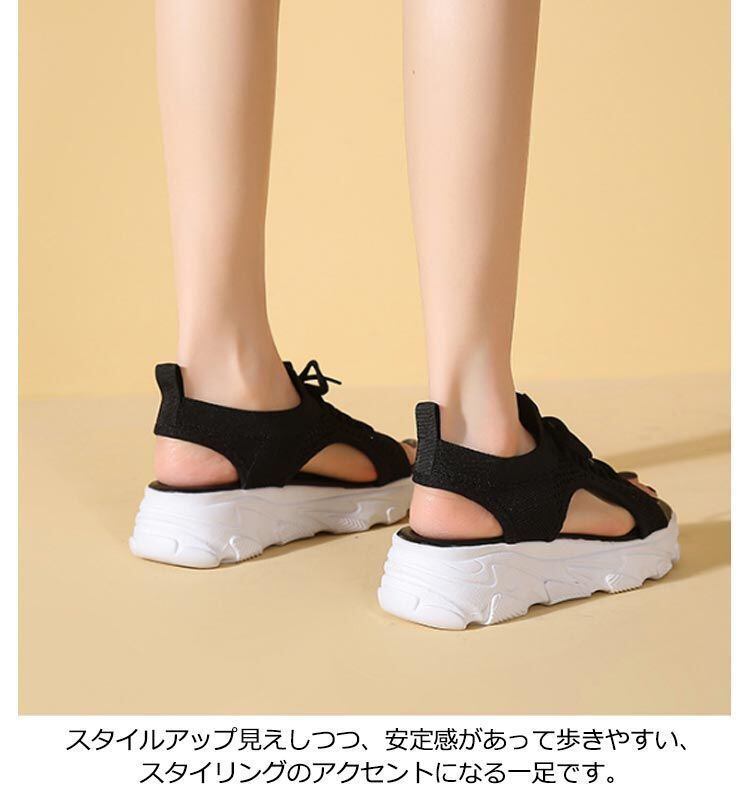 新品 サンダル レディース スポーツサンダル 厚底 レースアップ オープントゥ メッシュ ぺたんこ ビーチサンダル レディースシューズ 歩きやすい 通気性 アウトドア カジュアル 春 夏 無地 全3色 kkklbs