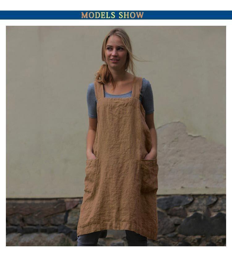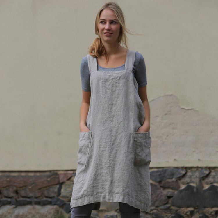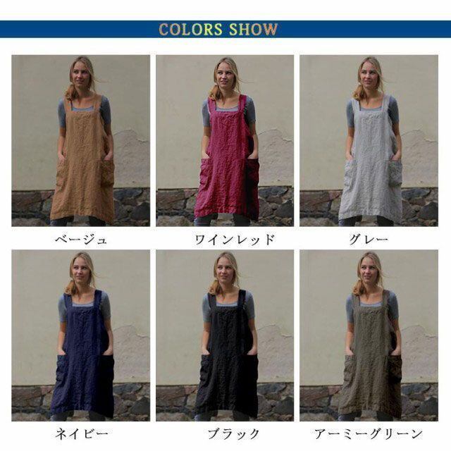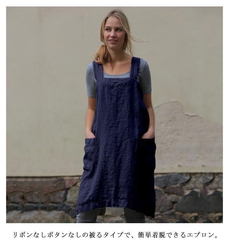 新品 エプロン 保育士 おしゃれ 綿麻 カフェエプロン 無地 ワンピース H型 ゆったり リネン ナチュラル 無地 シンプル 仕事用 かぶり かぶる 綿麻 北欧 かわいい ポケット付き レディース kkkxbj