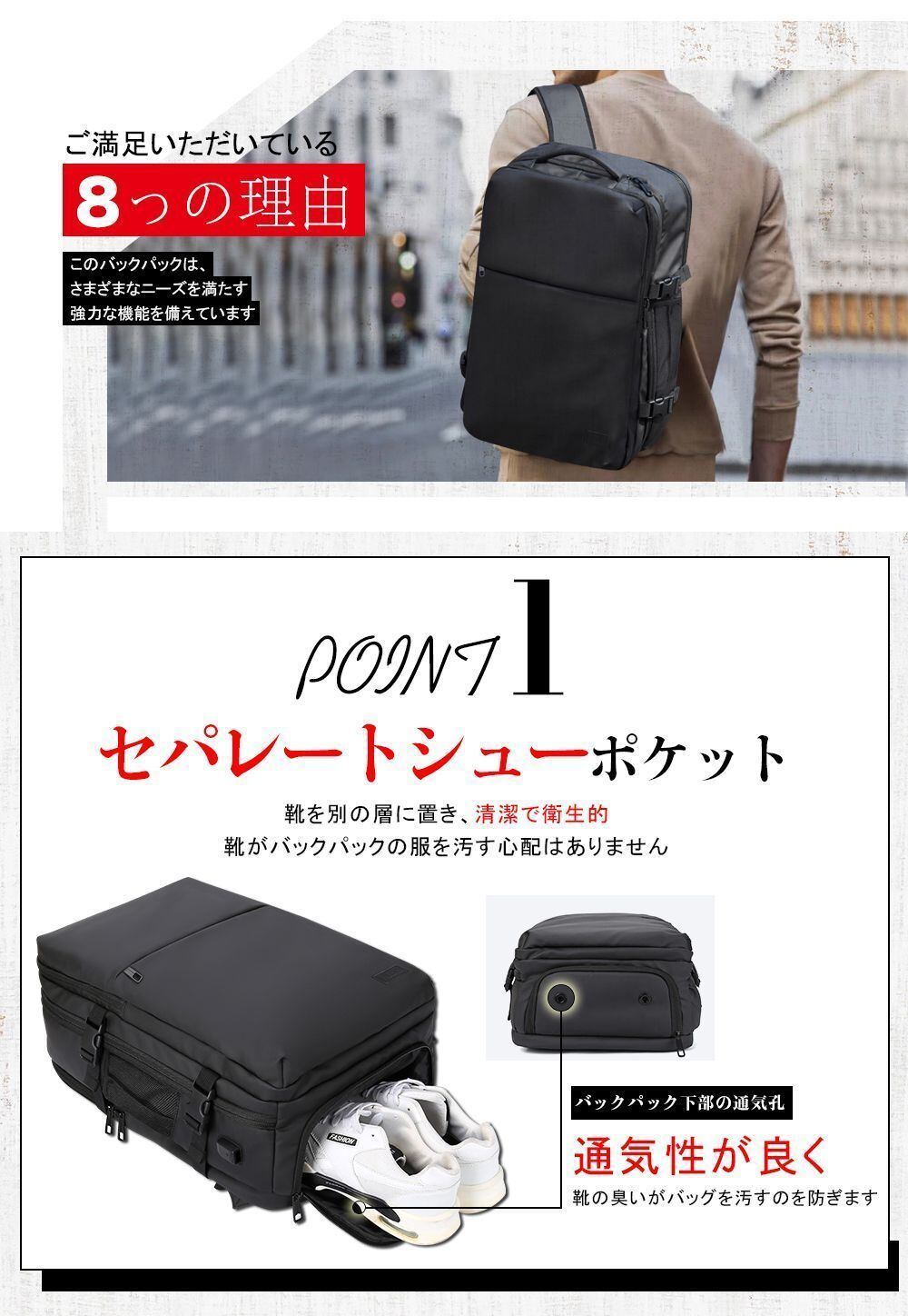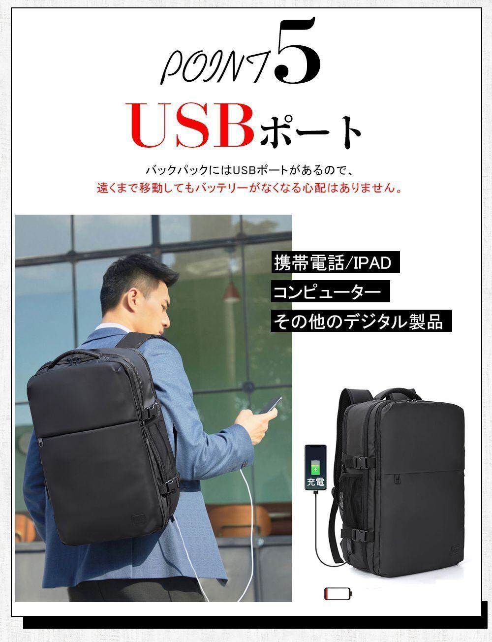 新品 ビジネスリュック メンズ 50l 大容量 防水 ビジネス リュック バッグ a4 pc usbポート 多機能 靴 収納 出張 旅行 ジム 防災 ナイロン 黒 ペットボトル 2way 30代 40代 大人 大学生 丈夫 韓国 kkkzbr
