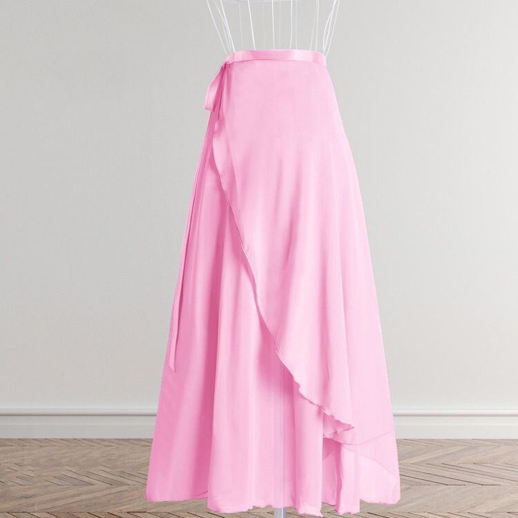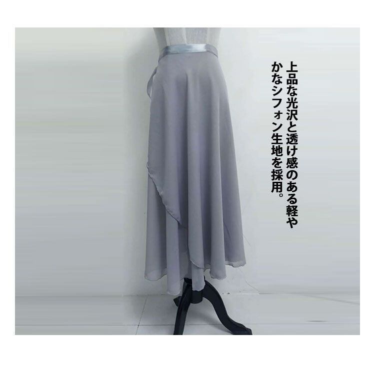 軽やかなシフォンが動くたびにふんわりと広がる、ロング丈のバレエ用巻きスカートです。