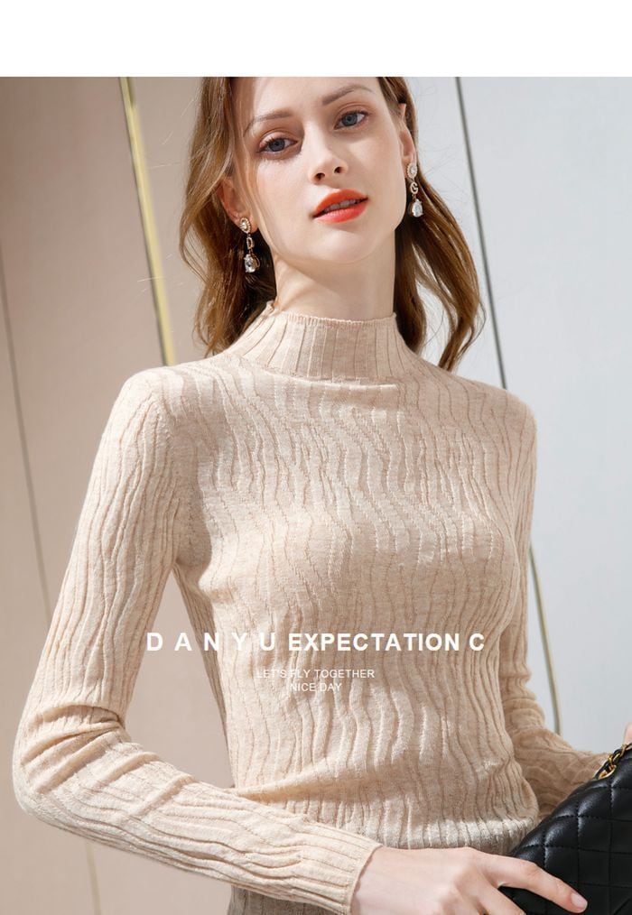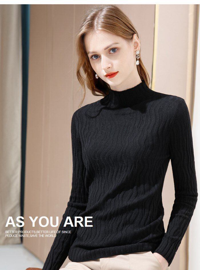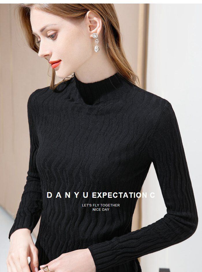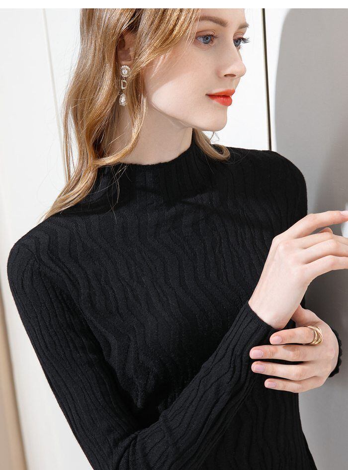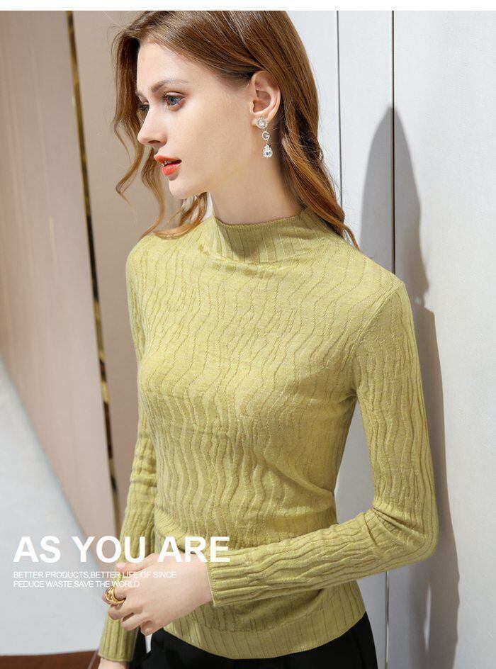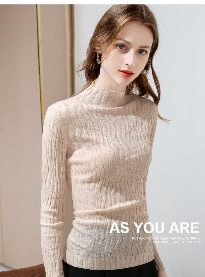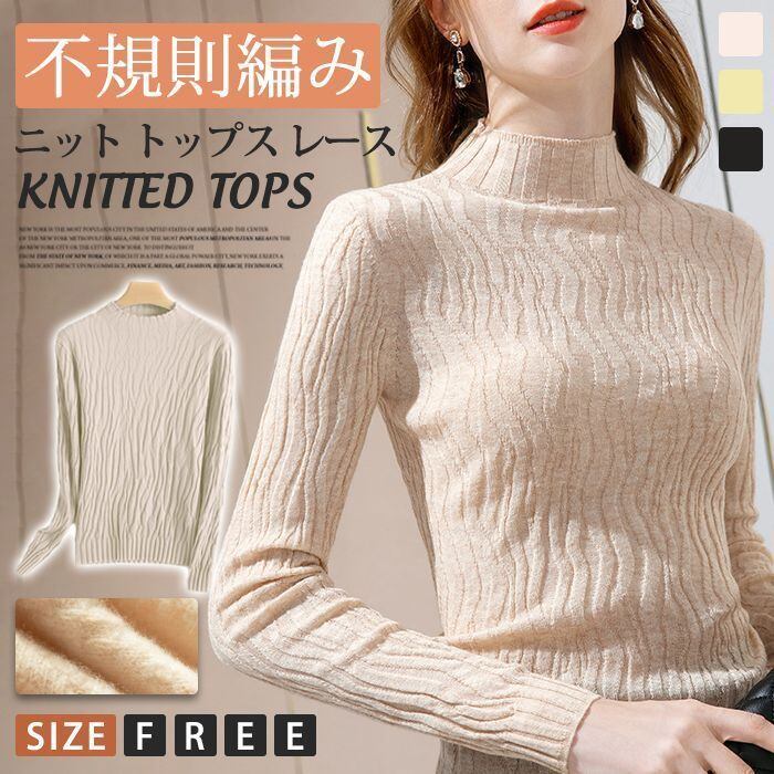 新品 ニット レディース モックネック 長袖 不規則編み リブ プチハイネック ゼブラ模様 無地 トップス 無地 秋冬 kkkhts