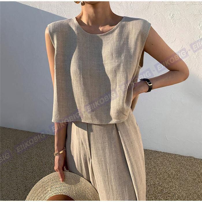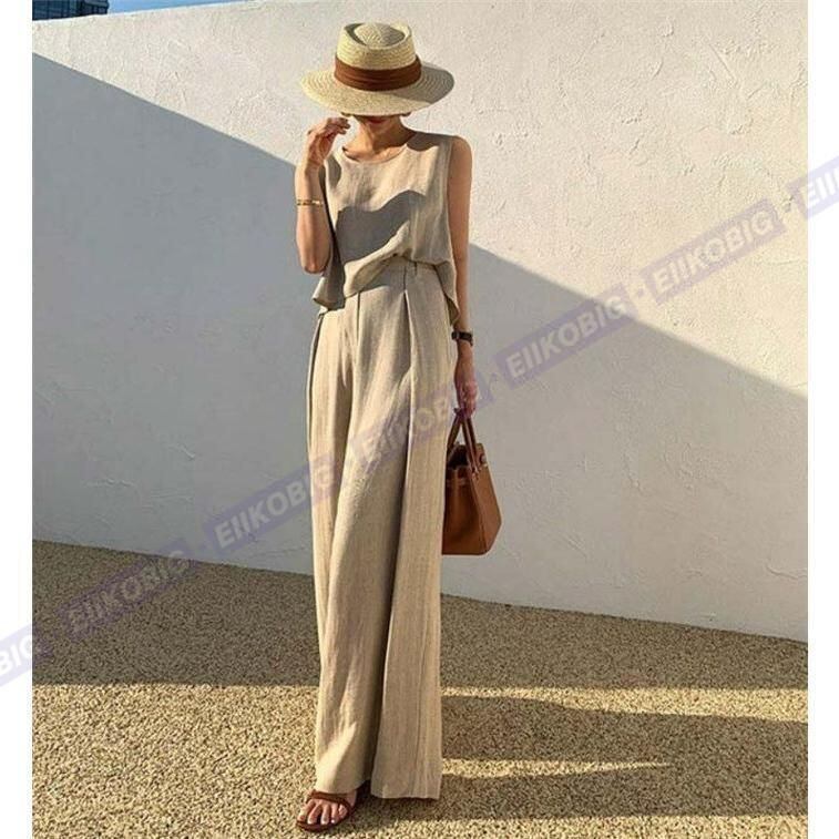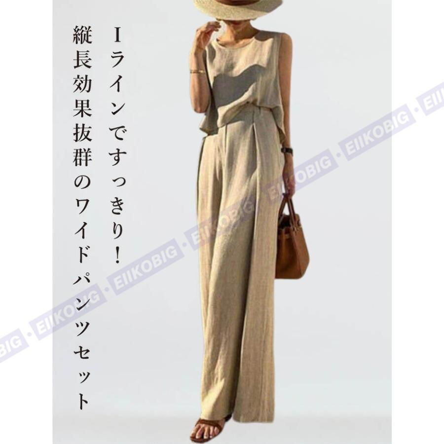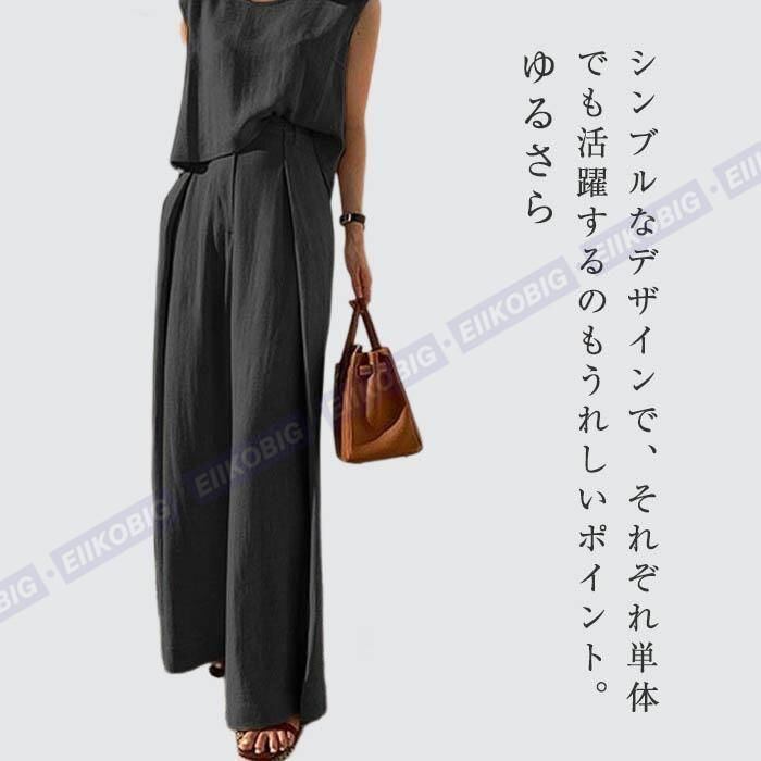 新品 パンツセットアップ レディース 夏 上下セット ワイドパンツ ブラウス ノースリーブ カジュアル 無地 きれいめ ロングパンツ kkkoiw