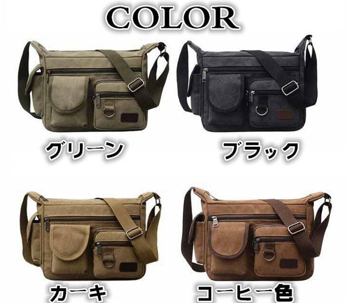 ショルダーバッグ バッグ メンズ 斜めがけバッグ ビジネス 大容量 旅行 出張 ミリタリー ショルダー キャンバス メッセンジャーバッグ カジュアル 肩がけ ズック 収納 多機能 斜めがけ 帆布バッグ 収納抜群 通勤 通学 【品 番】snuo03 【カラー】カーキ、ブラック、グリーン、コーヒー色 【サイズ】F 高さ:約23cm 横:約30cm マチ:約12cm 【素 材】ズック 【POINT】 ◆上質なキャンバスを素材として、耐久性が強いです。 ◆ショルダータイプで斜めがけにかけれるので両手が空いて大変便利。 ◆旅行、ビジネス、出張、通勤通学等に最適。 【ご注意】 ※白い部分はデザインとして加工されております。 ※生産時期により、色\u0026サイズ\u0026デザインが多少が異なる場合がございます。あらかじめ御了承下さい。 ※サイズは当店平置き実寸サイズです。タグの表記とは異なる場合があります。 ※PCの設定、ブラウザ等の環境の違いによりまして、モニターで表示されるカラーと実物のカラーに差異が生じる場合がございます。 ※上記注意点をご理解頂いただき、ご了承された上でご購入をご検討下さい。 (日曜日・祝日は発送対応しておりません。)