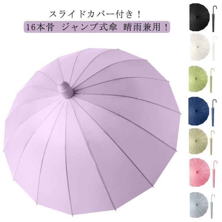 スライドカバー付き!16本骨 ジャンプ式傘 晴雨兼用!