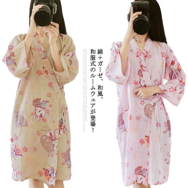 新品 浴衣 お風呂上り 入院着 寝巻き 綿 レディース 前開き ガーゼ ガーゼ バスローブ 和風 花柄 パジャマ 薄手 ねまき 部屋着 旅館 婦人服 寝間 kkkgce