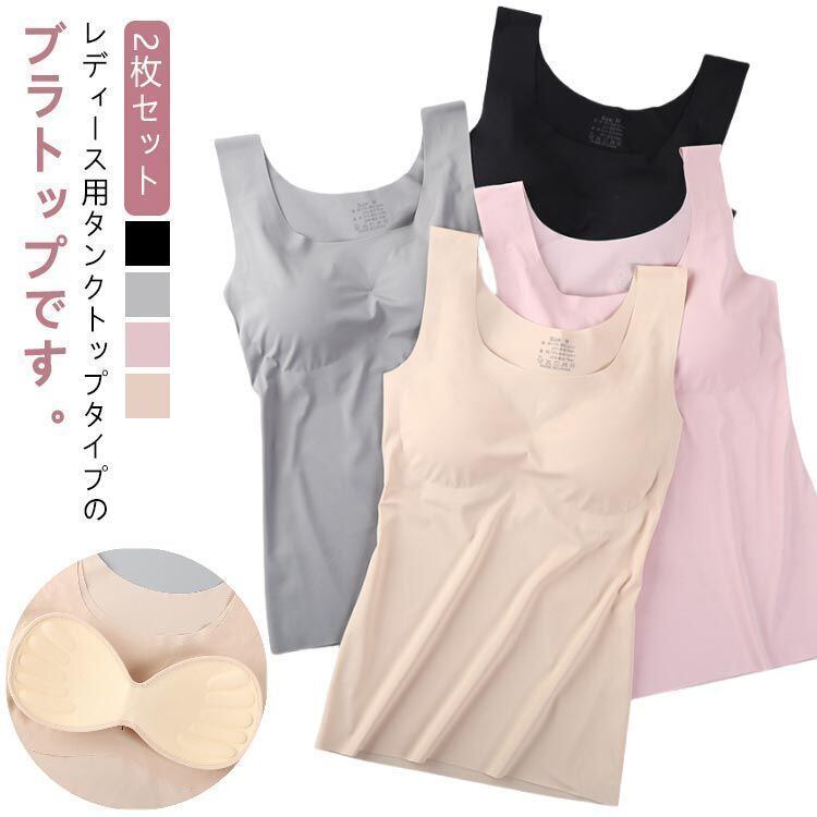 新品 ブラトップ カップ付き 2枚セット レディース カップ取り外し可能 下着 女性用 ノンワイヤー インナー シームレス 胸パッド付 アンダーゴムなし リラックス 無地 シンプル 普段 kkkccx