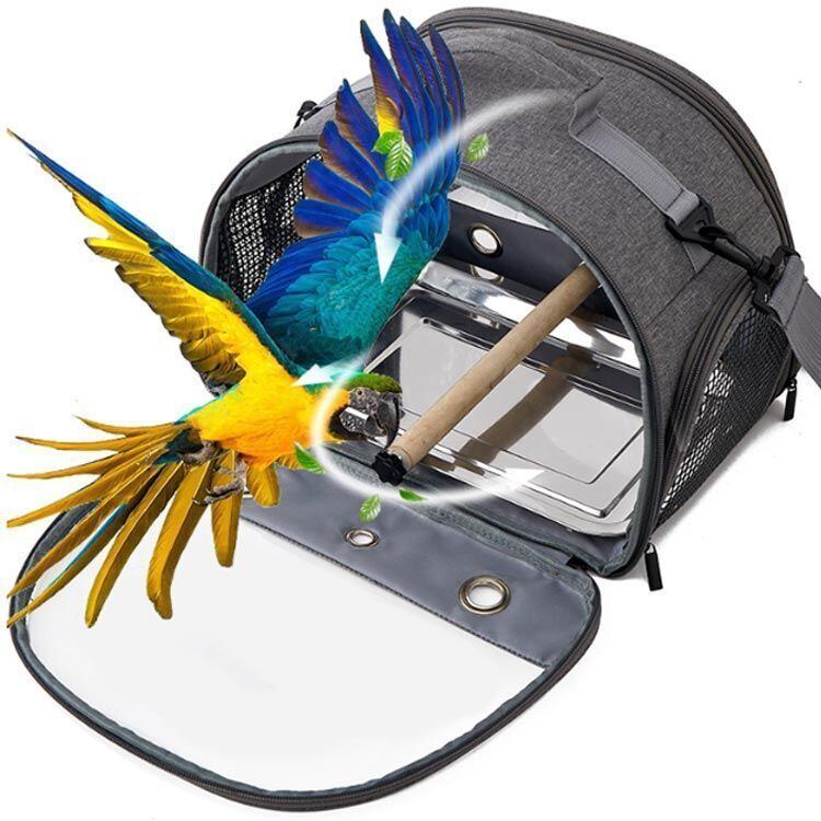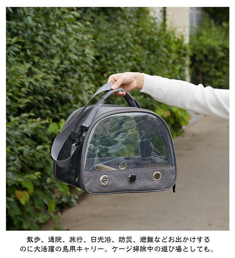 散歩、通院、旅行、日光浴、防災、避難などお出かけするのに大活躍の鳥用キャリー。ケージ掃除中の遊び場としても。