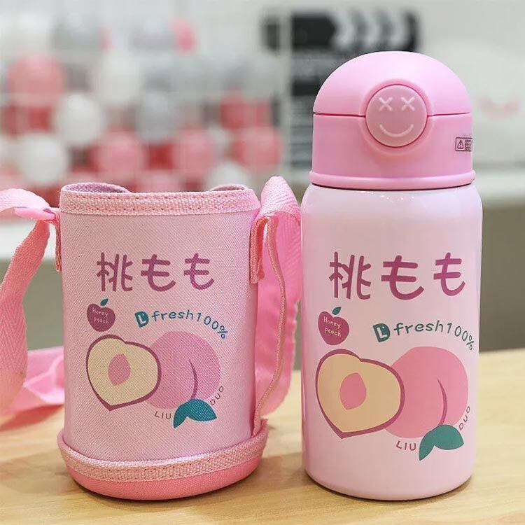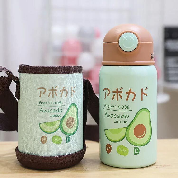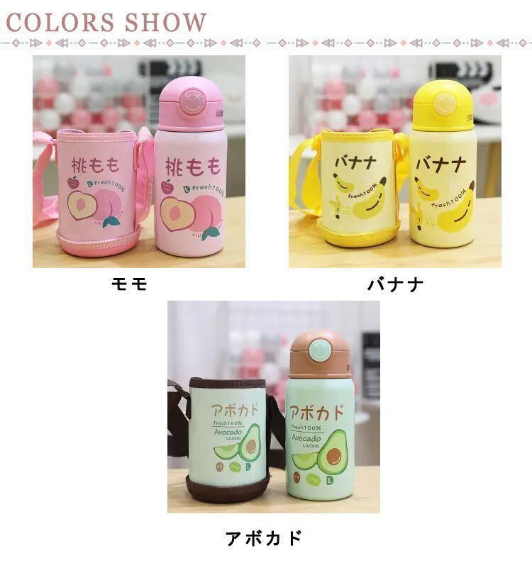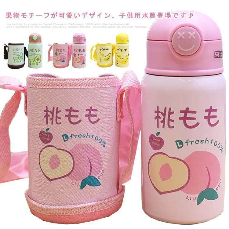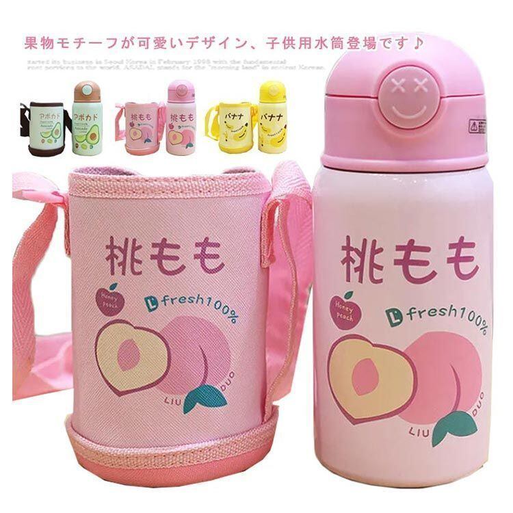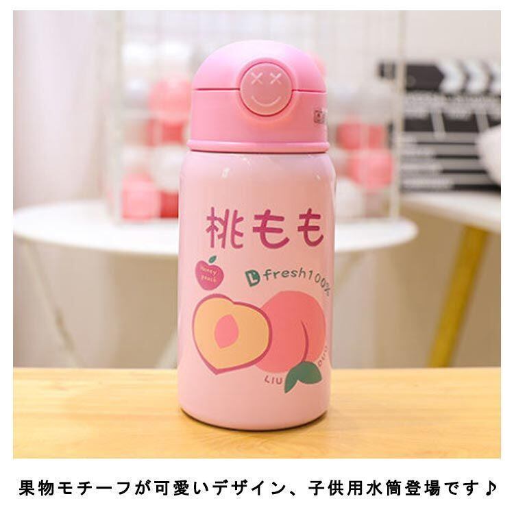新品 こども用水筒 子供 こども キッズ 子供用 ステンレス ステンレスボトル こども水筒 保冷 保温 直飲み 肩ひも付 肩掛け ストロー ボトル 軽量 肩ひも付き くだもの柄 かわいい ピクニック アウト kkkhpn