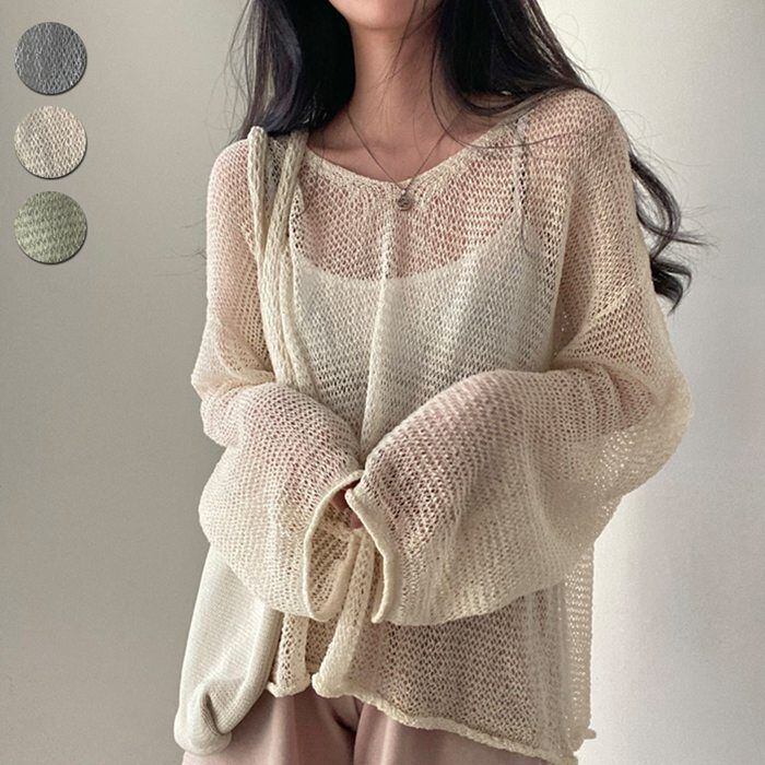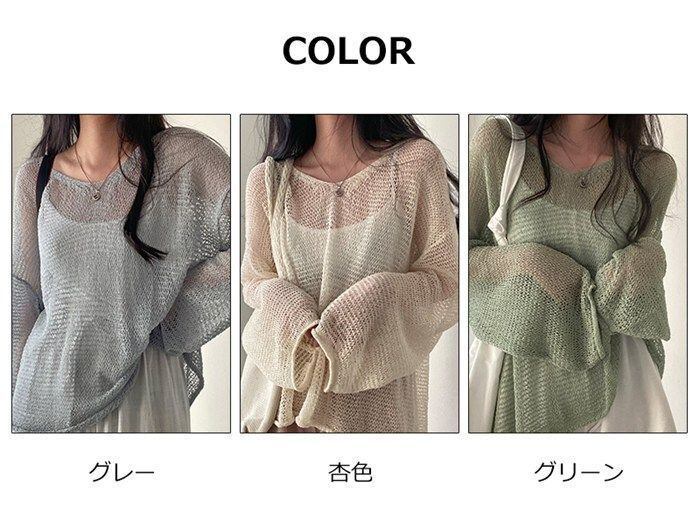 カットソー レディース ニット シースルー 透かし彫り Tシャツ トップス 上着 アウター プルオーバー Vネック 長袖 無地 カジュアル きれいめ 大人可愛い おしゃれ ファッション 春 夏 新作 重ね着 レイヤード ゆったり