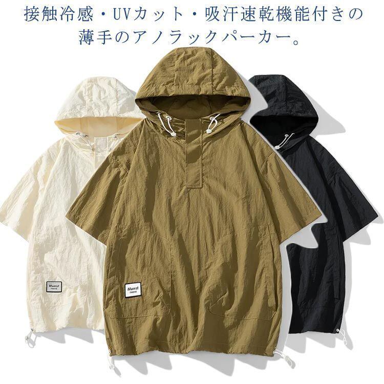 接触冷感・UVカット・吸汗速乾機能付きの薄手のアノラックパーカー。