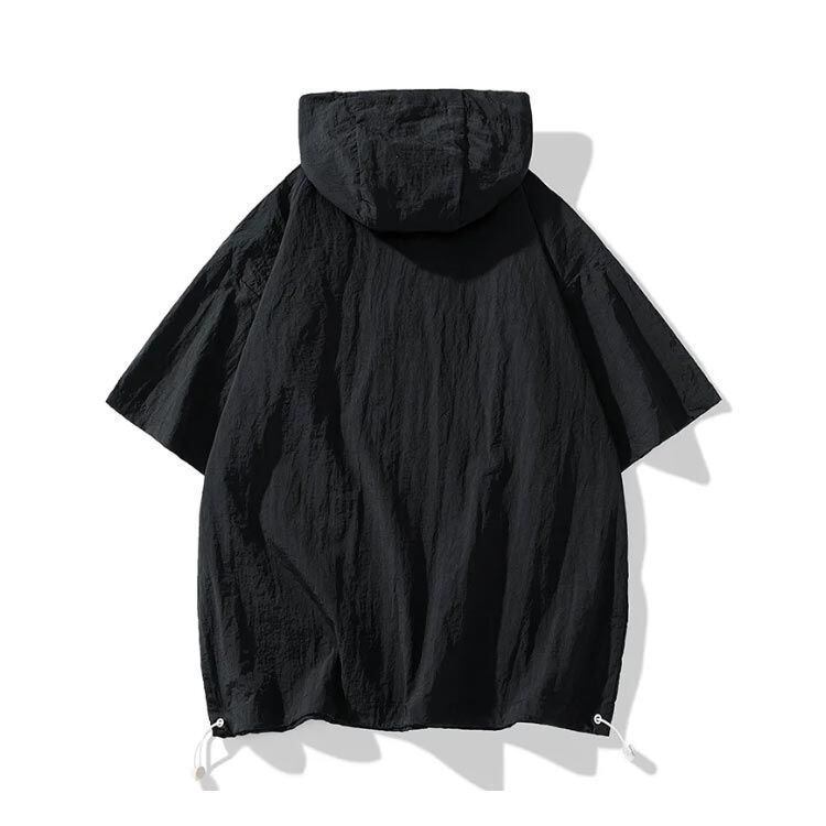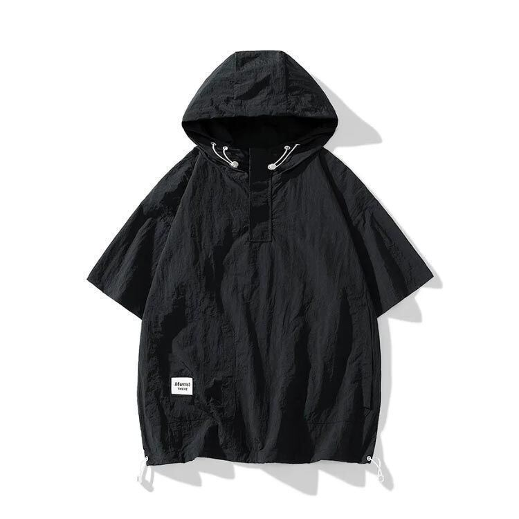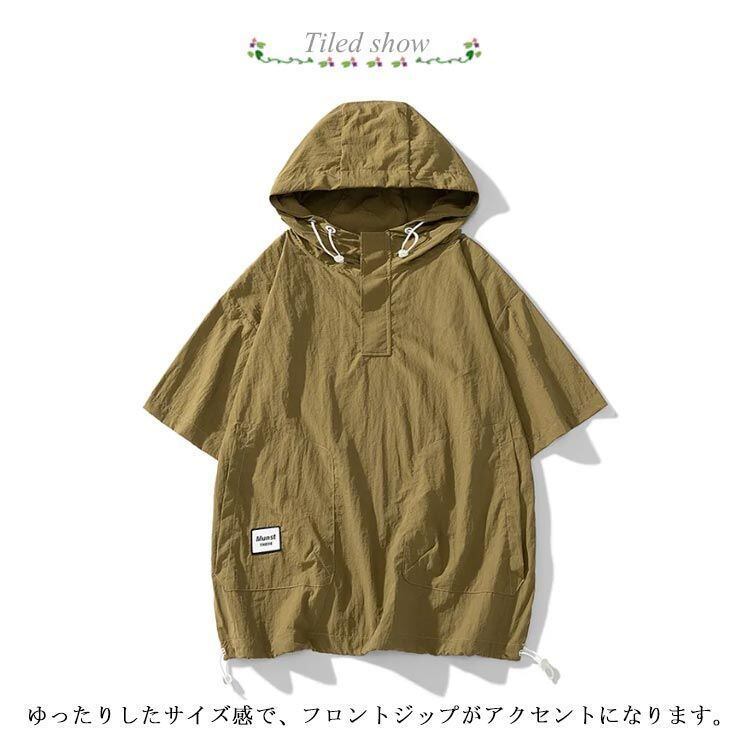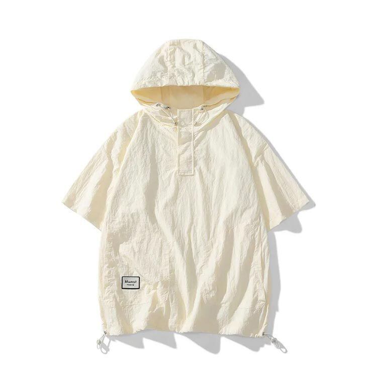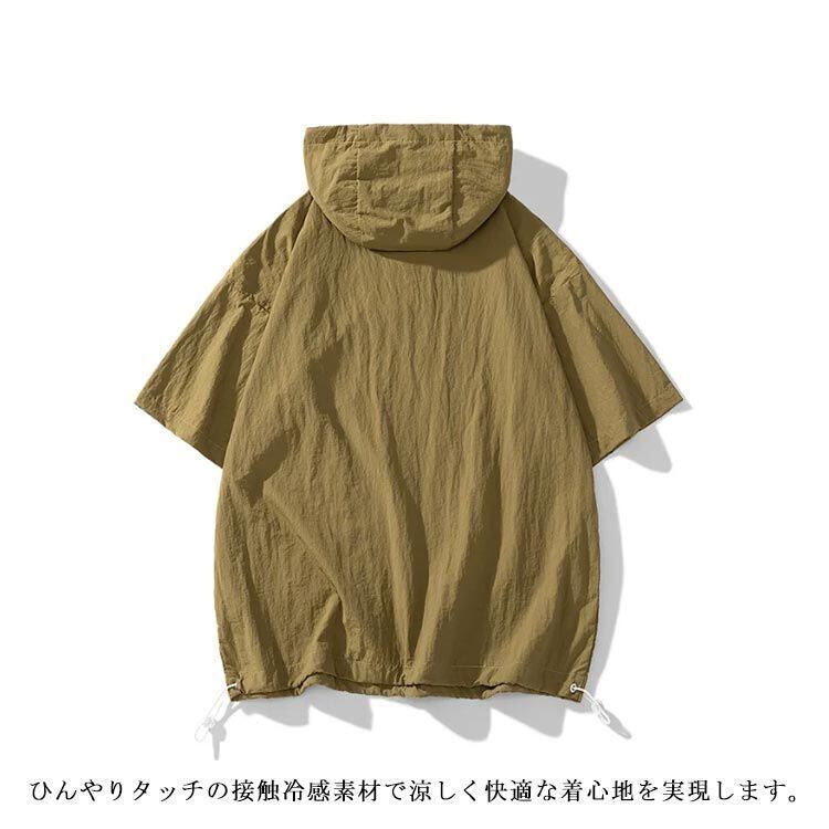 新品 ハーフジップ ひんやり メンズ 接触冷感 薄手 オーバーサイズ パーカー 夏パーカー 涼しい アノラック 紫外線カット UVカット アノラック 吸汗速乾 半袖パーカー プルオーバーパーカー フーディー kkkxlu