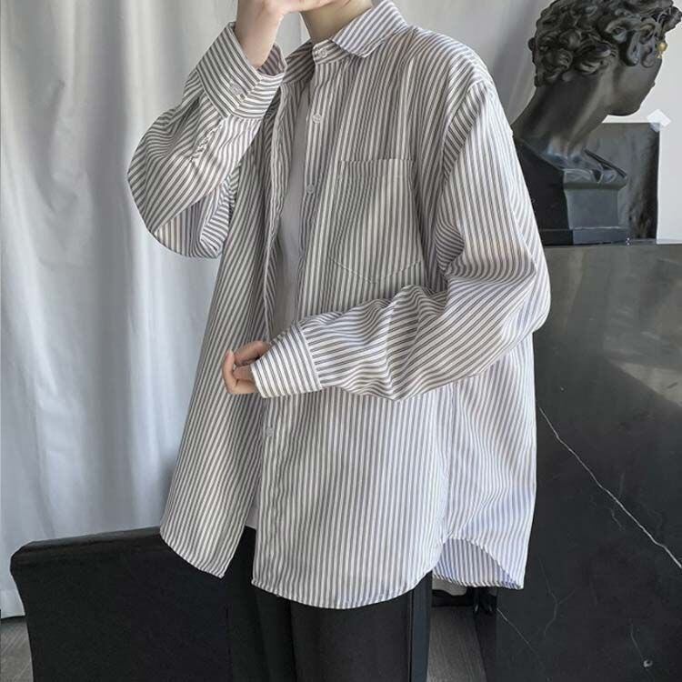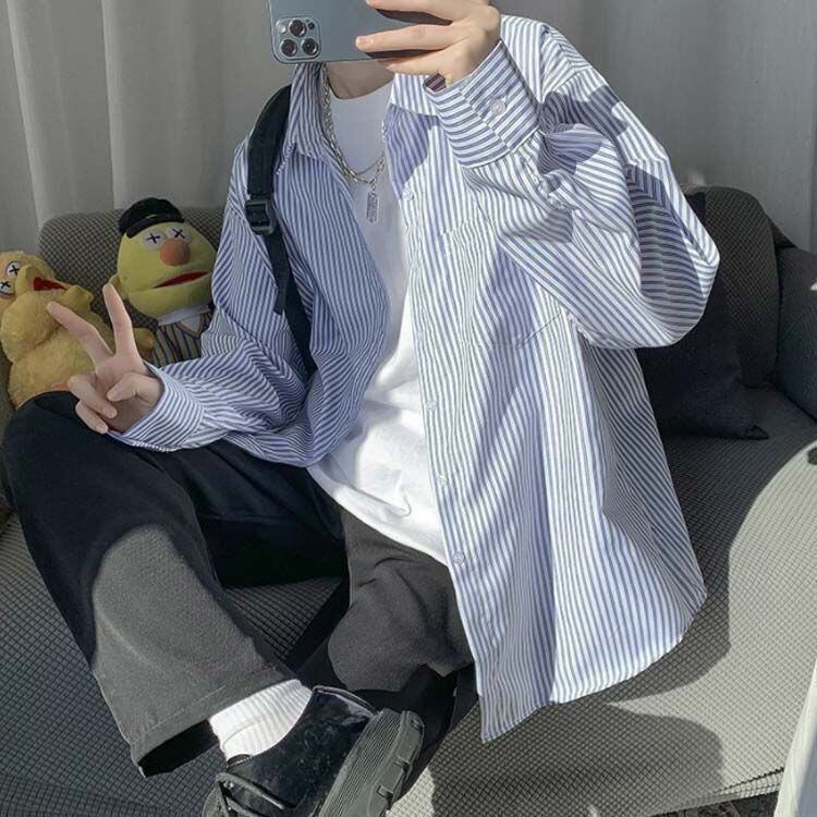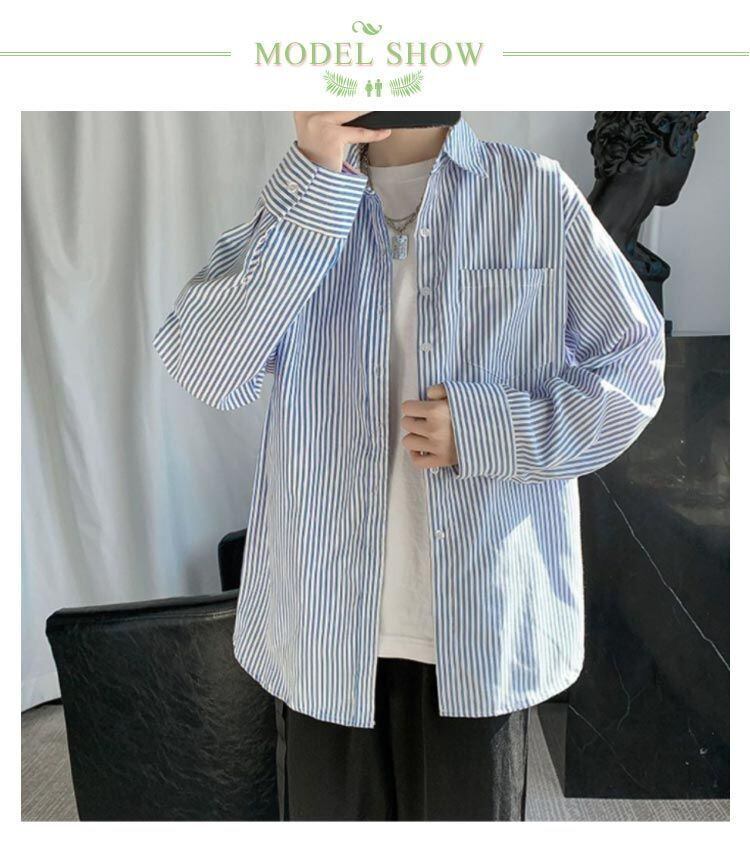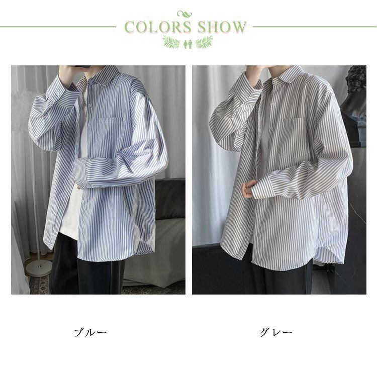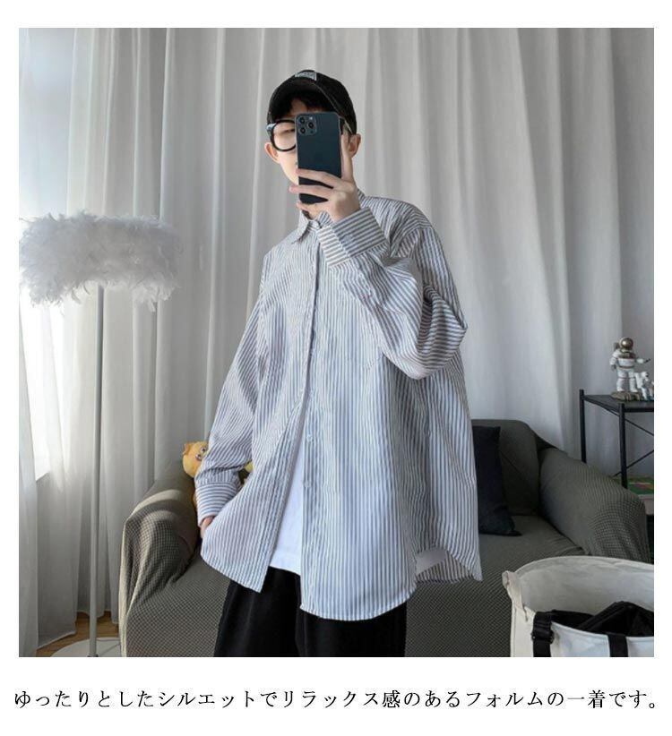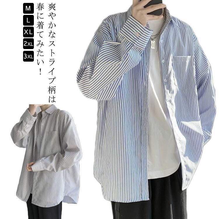 新品 ストライプシャツ メンズ 長袖 カジュアルシャツ 韓国 ファッション ビッグシルエット 春 夏 通勤 トップス 春服 春物 ゆったり オーバーサイズ ストリート系 モード系 シンプル 大きいサイズ 送 kkkone