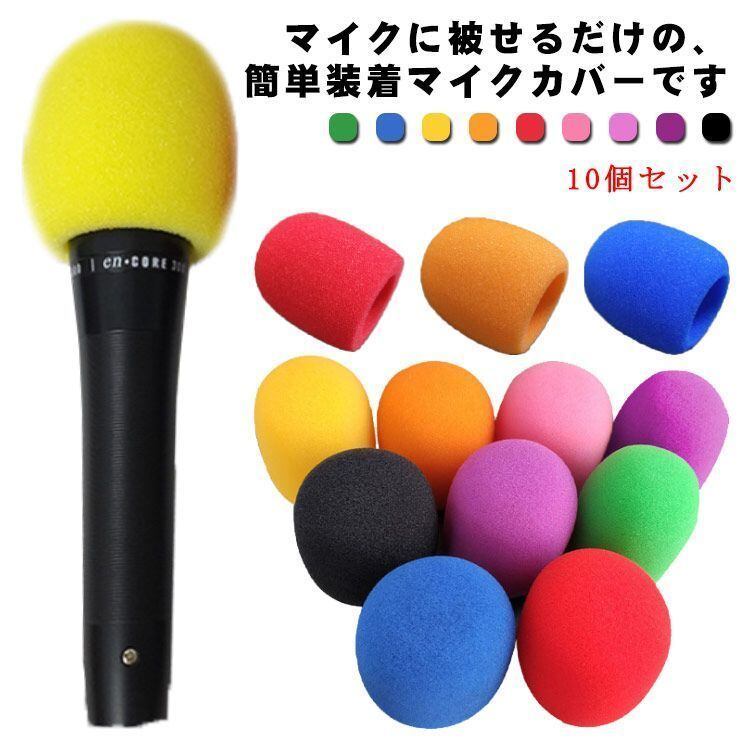新品 マイクカバー 10個セット 交換用 マイクスポンジ 風防 マイク スポンジ マイクヘッド ハウリング防止 雑音防止 カラフル カラオケマイク最適 洗えるカバー 結婚式場 講義 司会 塾講師 kkkggy