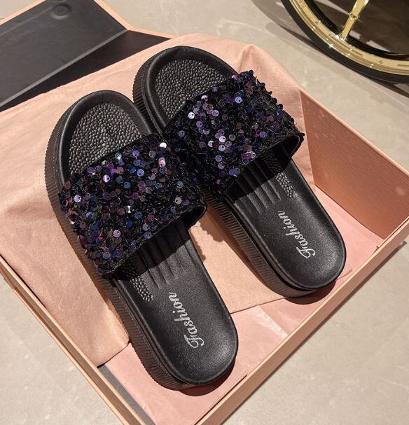 新品 サンダル レディース 歩きやすい スリッパ キラキラ スパンコール シューズ 夏 kkkwhi