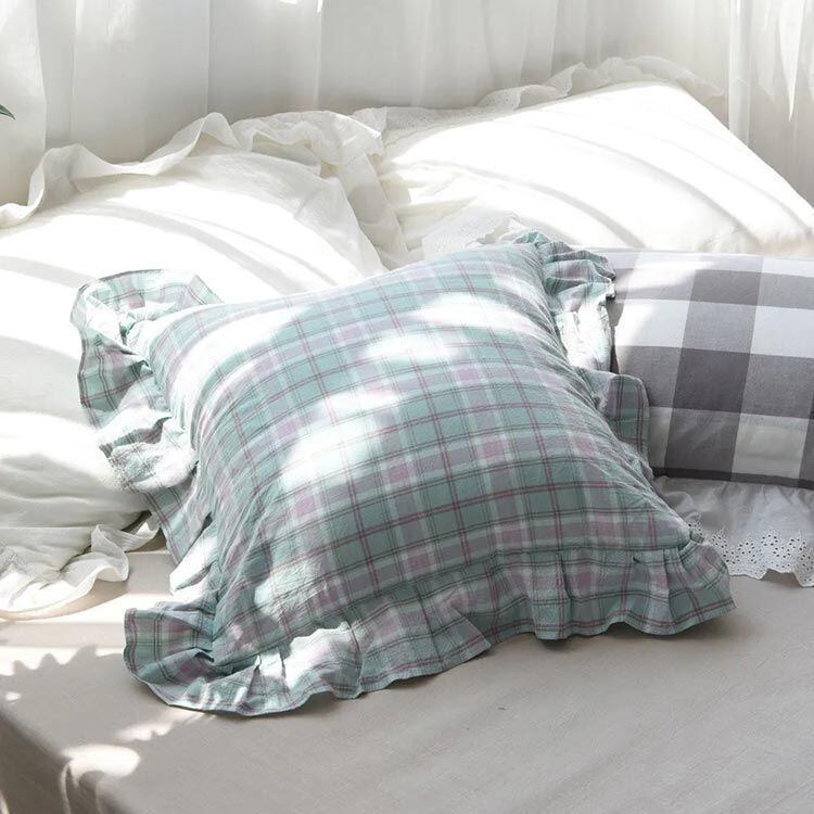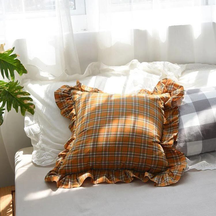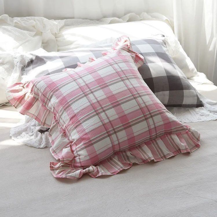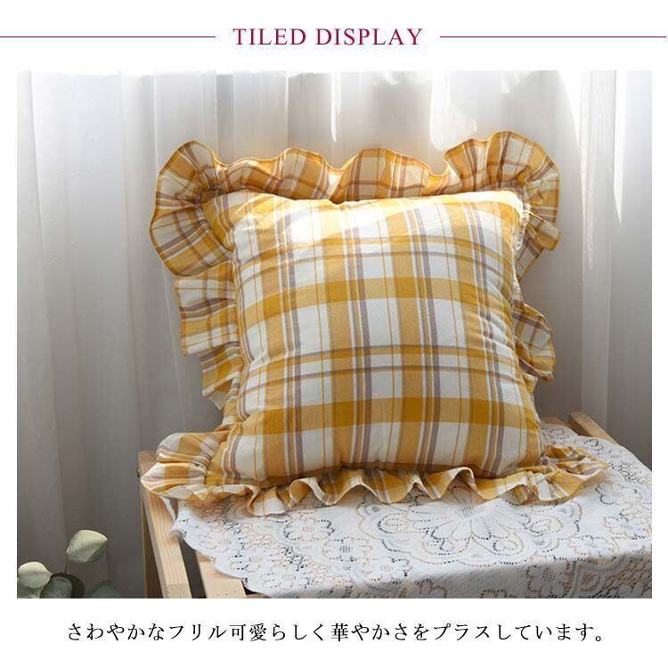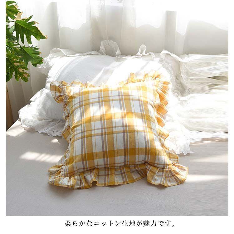 新品 クッションカバー 45×45cm チェック柄 フリル クッションカバー 座布団カバー 綿 やわらかい 洗える 正方形 クッションカバー 北欧 モダン かわいい おしゃれ かわいい シンプル インテリア kkkips