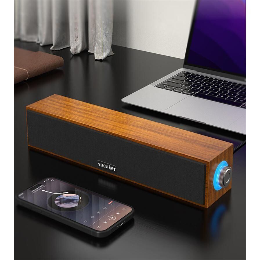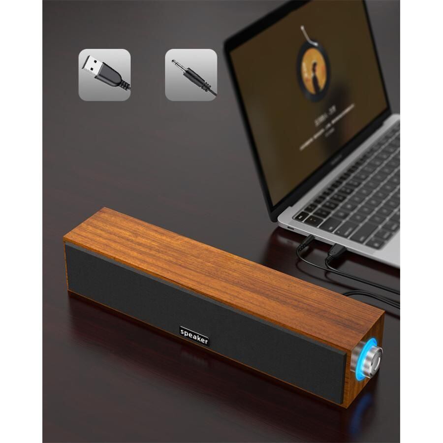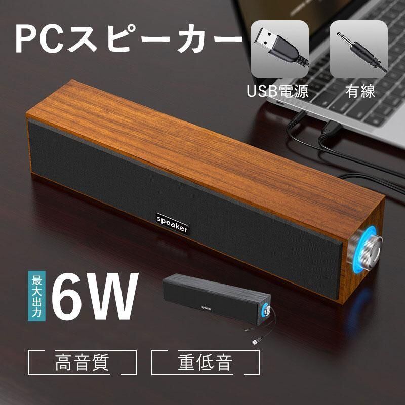 新品 スピーカー USB 高音質 PCスピーカー サウンドバー パソコンスピーカー 有線 木製 スリム 小型 コンパクト 簡単操作 ゲーム 自宅 おしゃれ kkkkpw