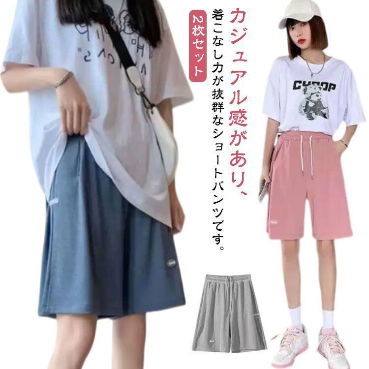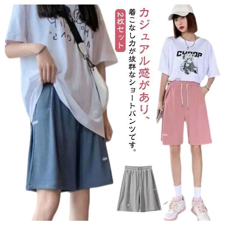 新品 2枚セット 接触冷感 パンツ アイスシルクパンツ ハーフパンツ レディース 冷感パンツ 短パン 半ズボン 無地 5分丈 パンツ 夏 薄手 ひんやり 涼しい 体型カバー カジュアル ゆったり 大きいサイ kkktip