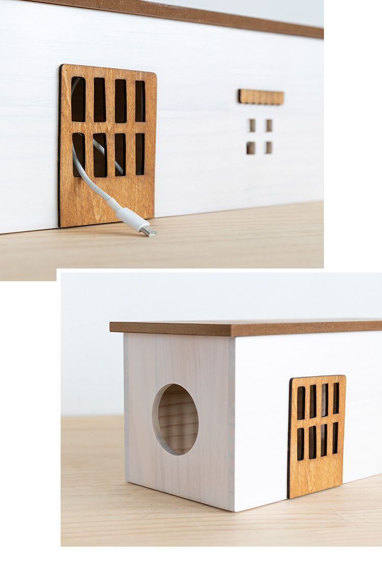 収納とインテリア性に優れた設計、電源タップやタコ足配線を隠しておしゃれに演出してくれる コードボックス。