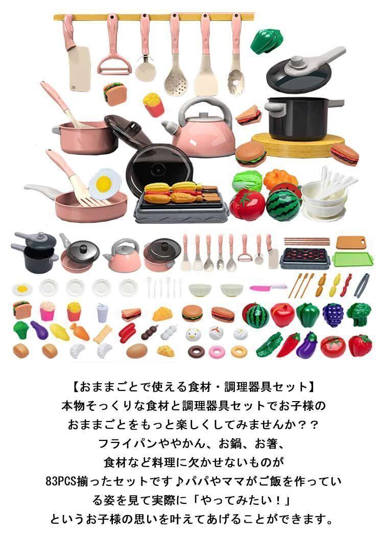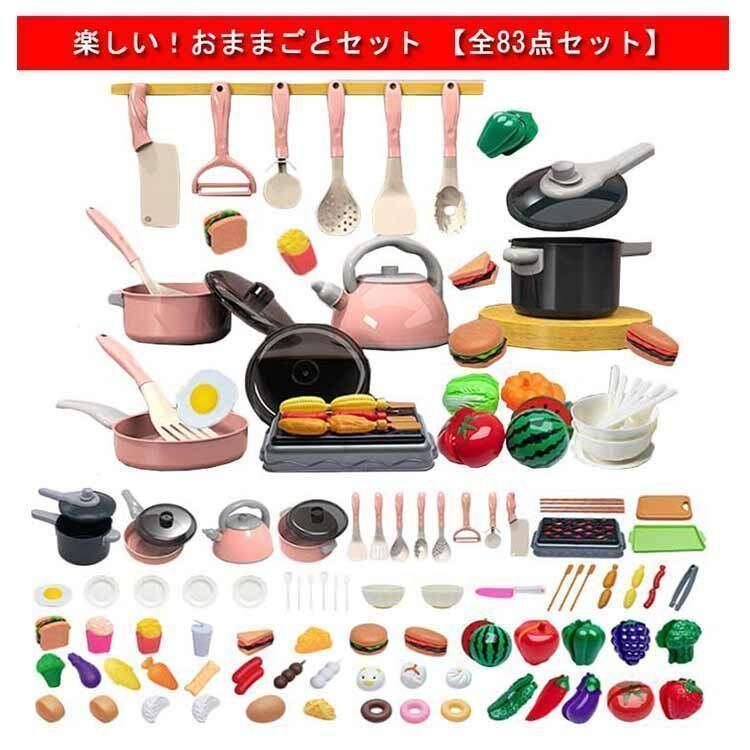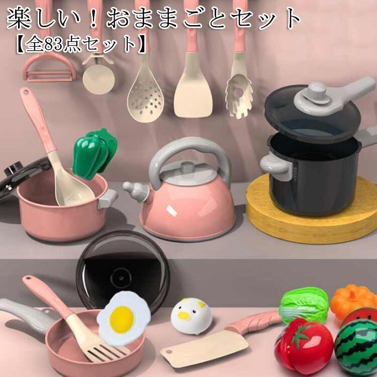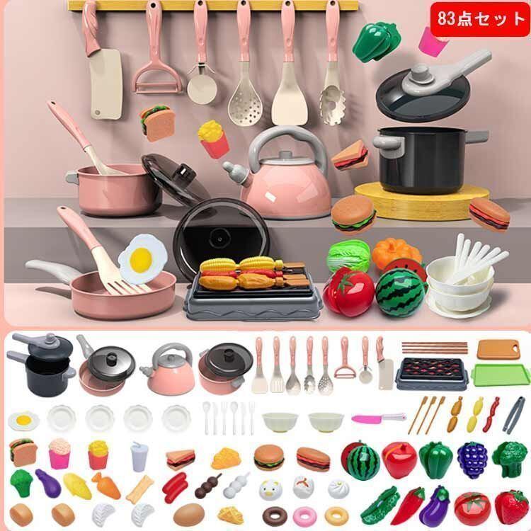 新品 ままごとセット 83点セット 子供 キッチン 玩具 知育玩具 調理器具 食材 野菜 果物 台所 お料理セット キッズ 子供 室内遊び 男の子 女の子 おままごと ギフト 誕生日祝い 出産祝い 子供 幼 新品 kkkcwn