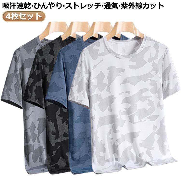 新品 4枚セット! 半袖 Tシャツ 接触冷感 夏用 涼しい トップス クルーネック 吸汗速乾 UVカット メンズ メッシュ スポーツ 作業服 作業着 ランニング レディース 男女兼用 メッシュ スポーツ ス kkkxic