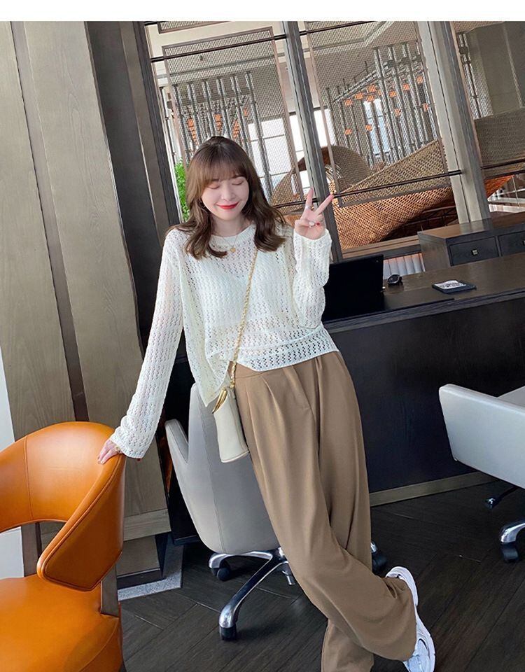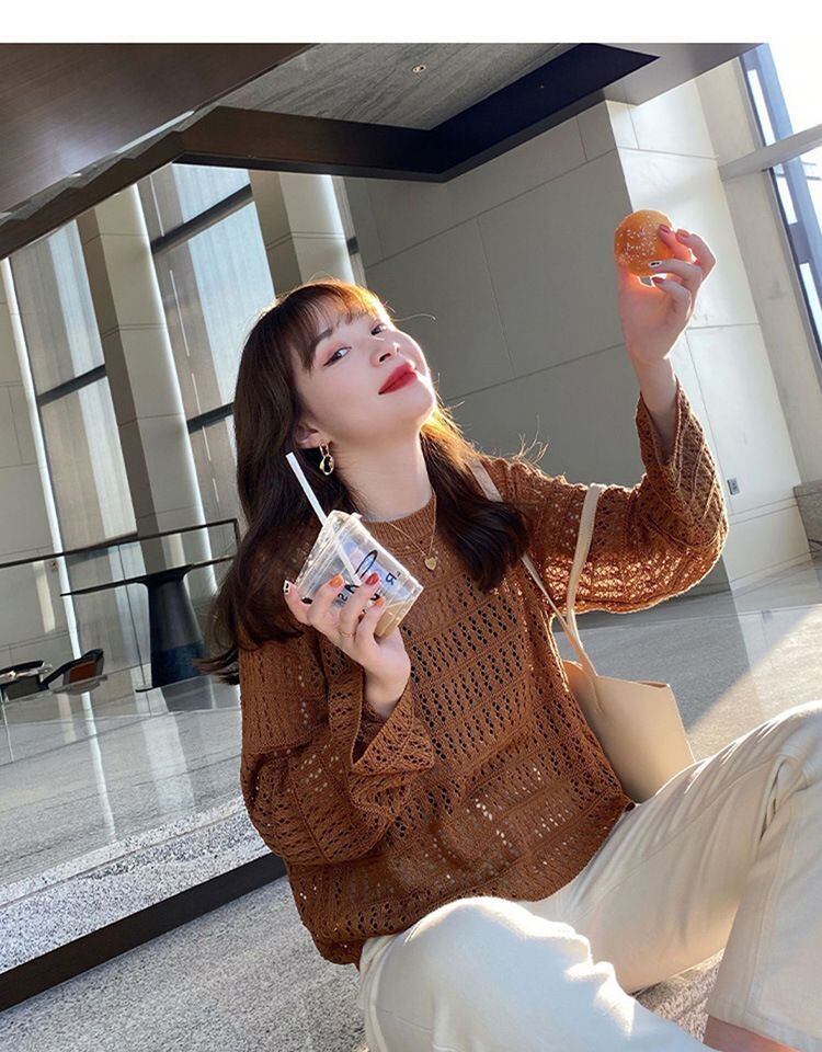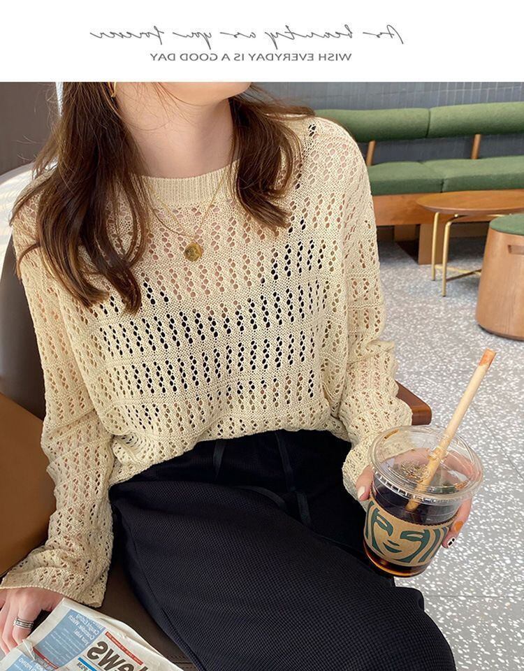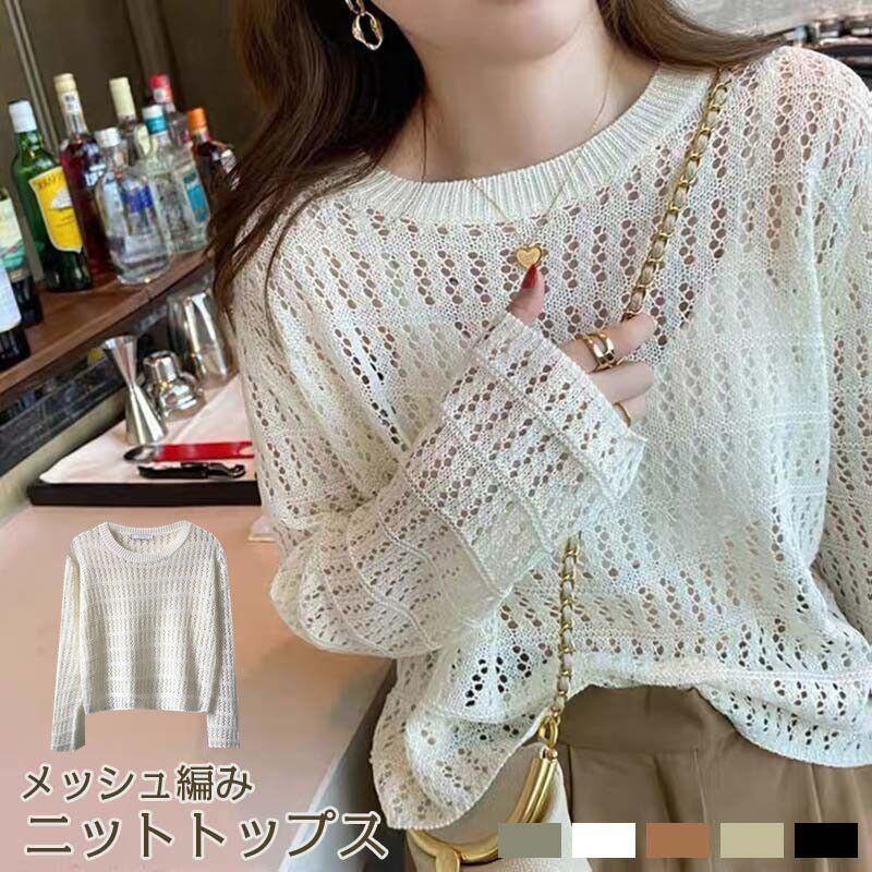 新品 ニットトップス レディース メッシュ編み 重ね着 薄手 トップス レイヤード ラウンドネック 穴あき 透け感 長袖 体型カバー プルオーバー ゆったり おしゃれ 抜け感 春夏 kkktms