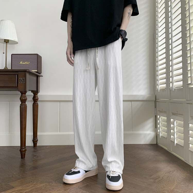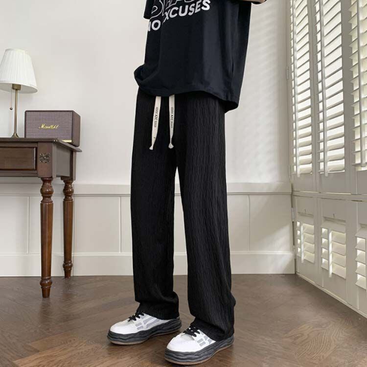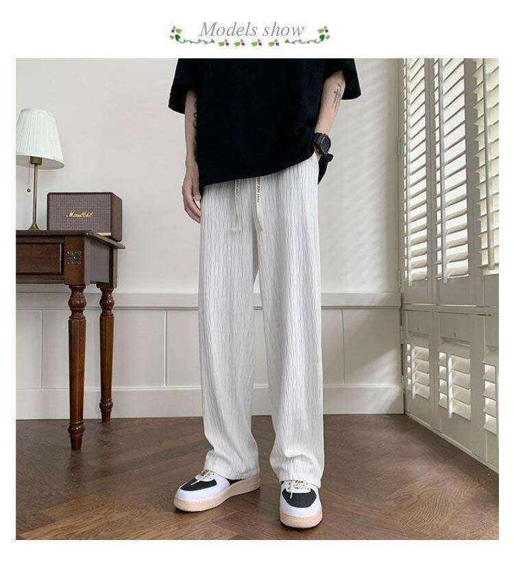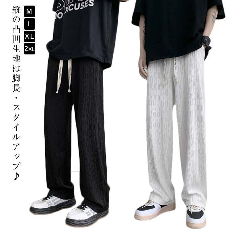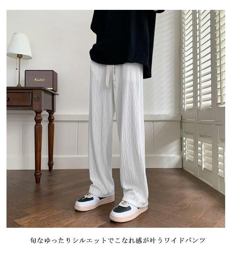 新品 ワイドパンツ ストレート 薄手 ルーズパンツ リラックスパンツ 無地 メンズ イージーパンツ アイスシルク 春 ルーズフィット パンツ 夏パン kkkytq