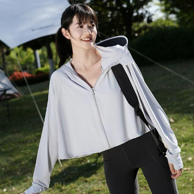 UVカット率95%のUVショート丈ジップアップパーカー 吸水速乾 接触冷感 UPF50+