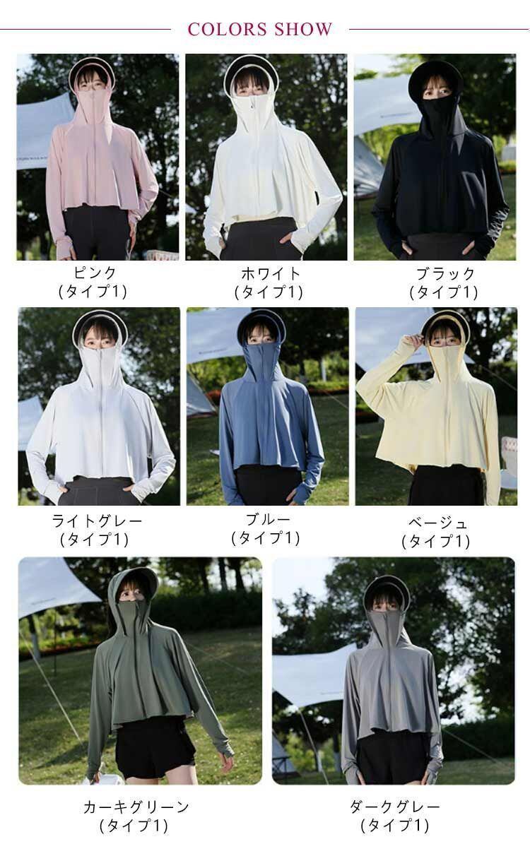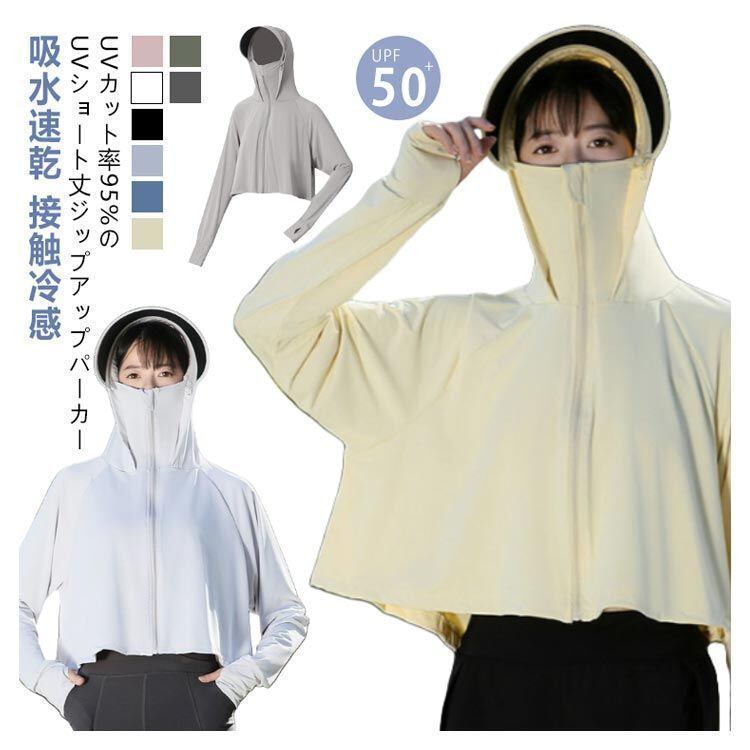 新品 UVカット パーカー ショート ポンチョ UV 冷感 UPF50+ レディース 長袖 ショート丈 ラッシュガード UVカット率95%以上 マスク 指穴 手袋 つば 取り外し可能 トップス アウター フ kkkgne