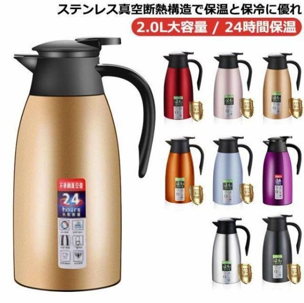 新品 卓上ポット 保温 魔法瓶 魔法瓶 卓上ポット 2000ml まほうびん 真空断熱 2.0L 2リットル 魔法瓶ポット 2リットル 大容量 魔法瓶 ポット 保温 力 ステンレス 保温 保冷 ポット おし kkkozn