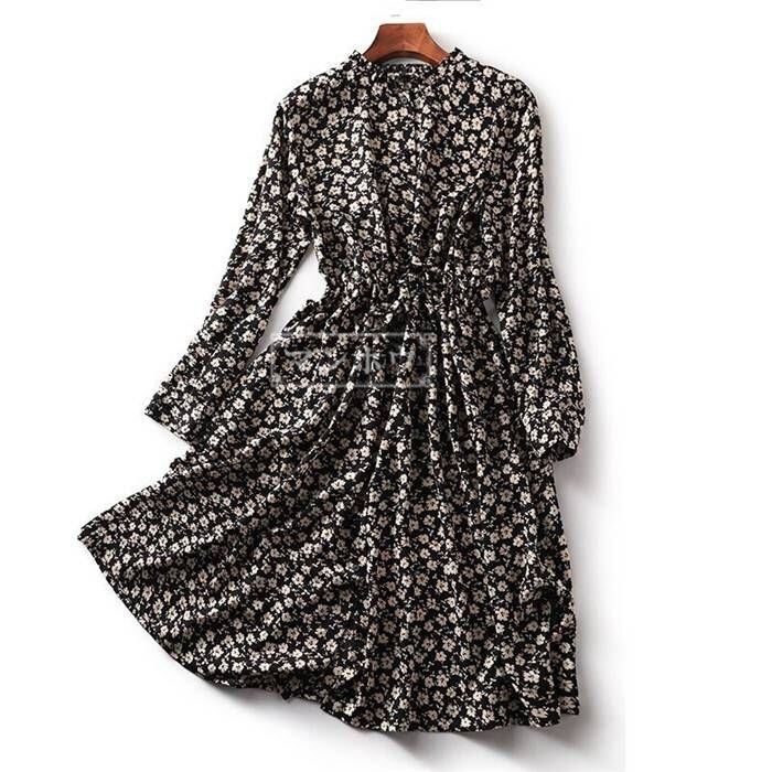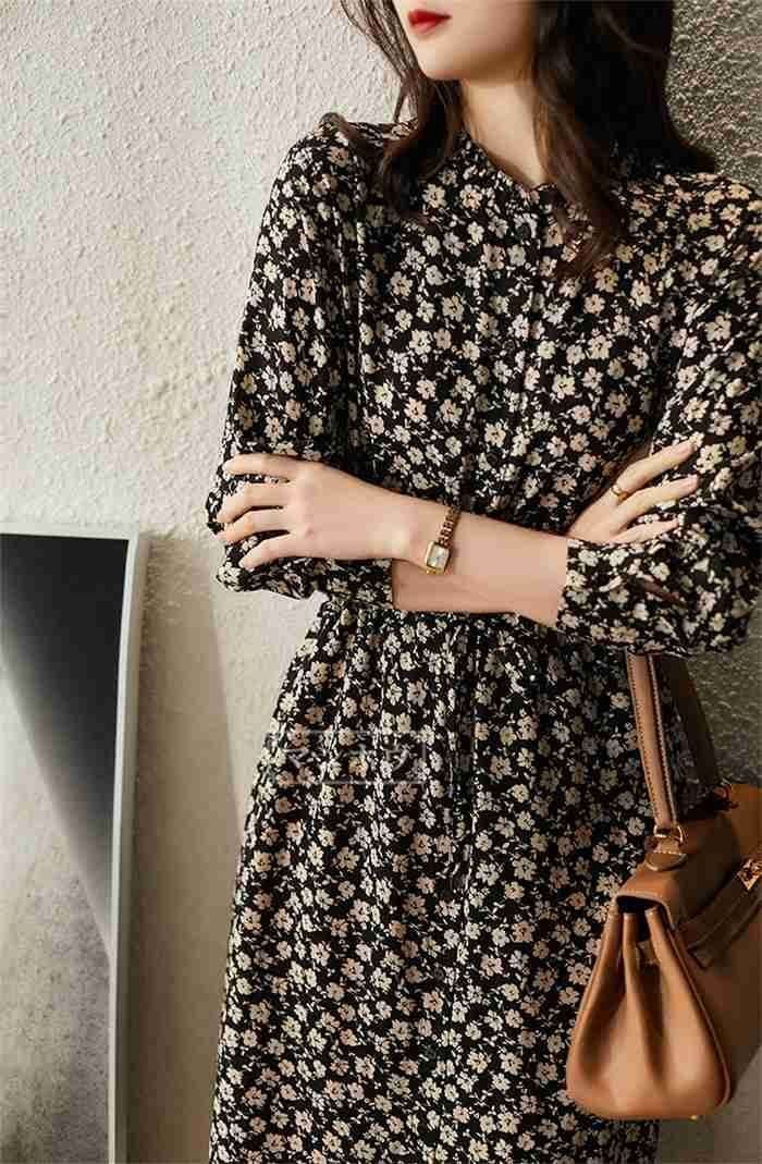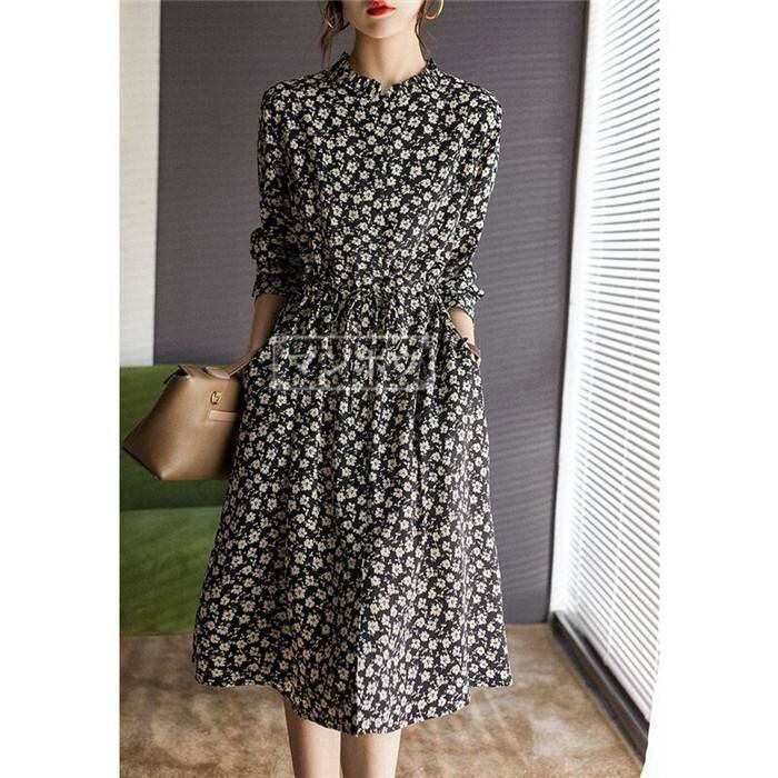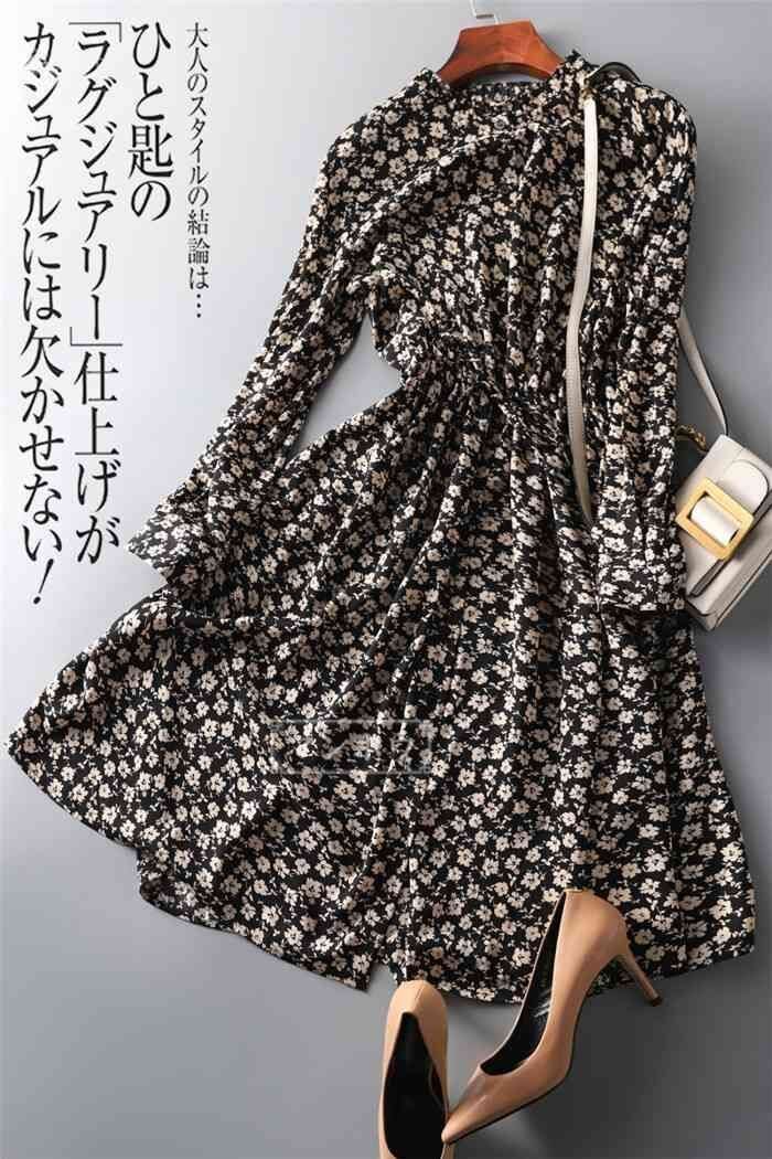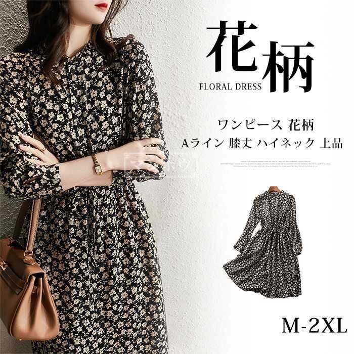 新品 ワンピース 花柄 レディース 花柄ワンピース 長袖 きれいめ 春 秋 冬 シフォン ロングワンピ フリルワンピ ロングワンピース ロング ミモレ丈 膝丈 ハイネック 上品 リゾート Aライン 結婚式 パーティー OL オフェス 通勤 kkkppy