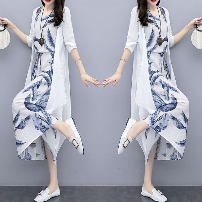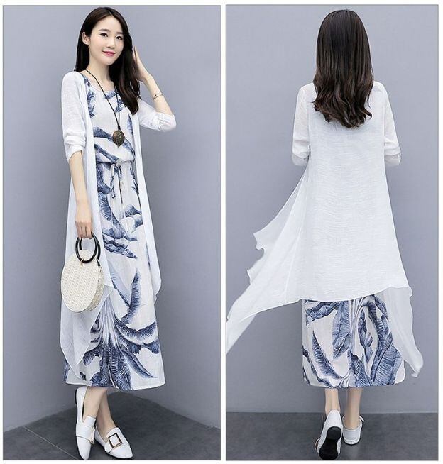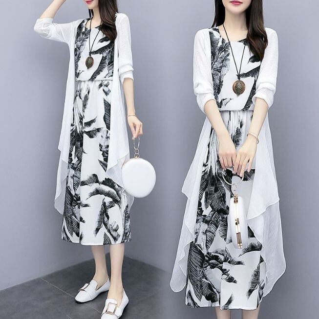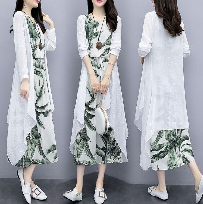新品 ワンピース レディース 30代 40代 マキシワンピース 春夏 2点セット セットアップ 花柄 おしゃれ シフォン フレアスカート きれいめ 韓国風 20代 50代 ゆったり UVカット マキシ kkkjzx