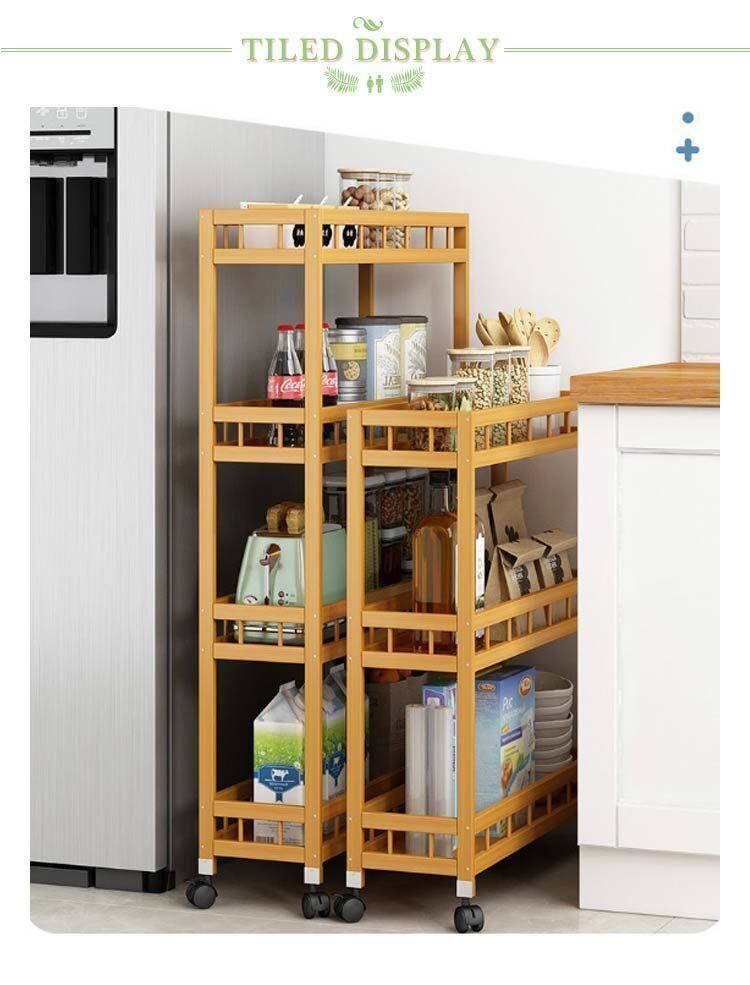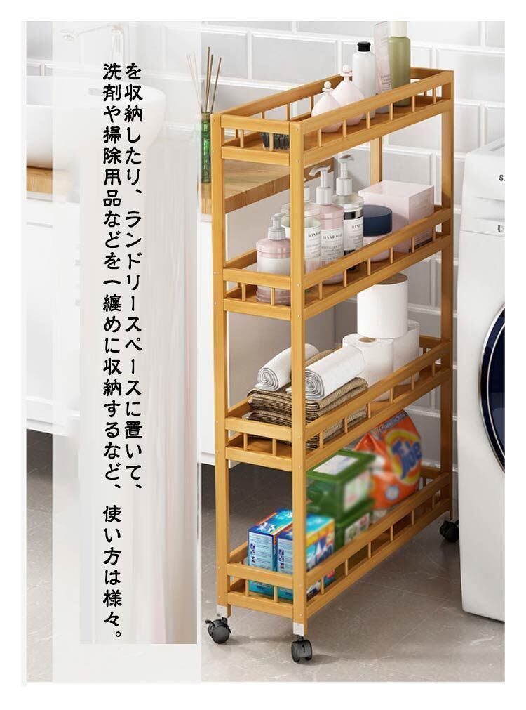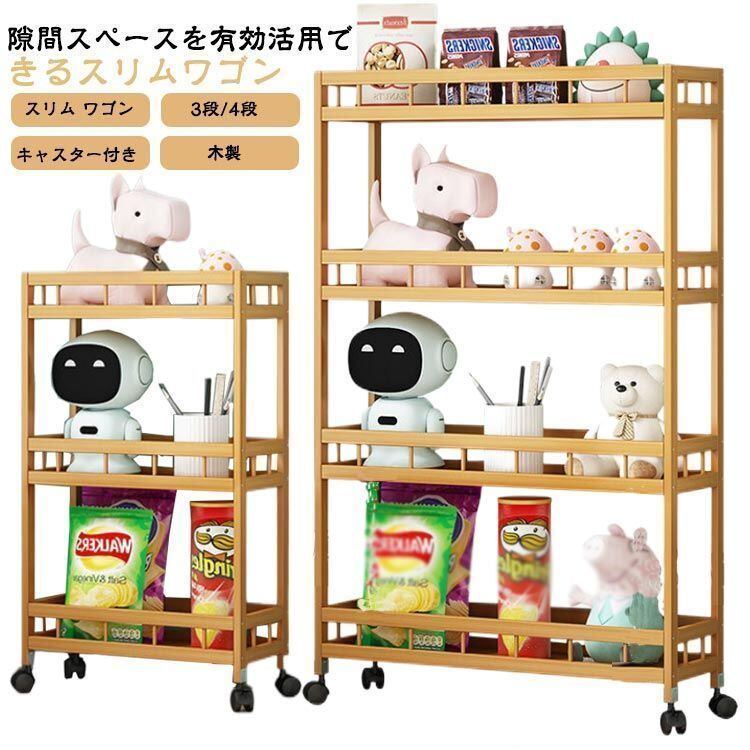 新品 ワゴン 3段/4段 おしゃれ 木製 ベランダ ラック 幅18cm キッチンワゴン リビング バスケット 隙間収納 台所 北欧 キッチン収納 竹製 隙間棚 狭い所 キャスター付き 隙間を活用 kkkwiw