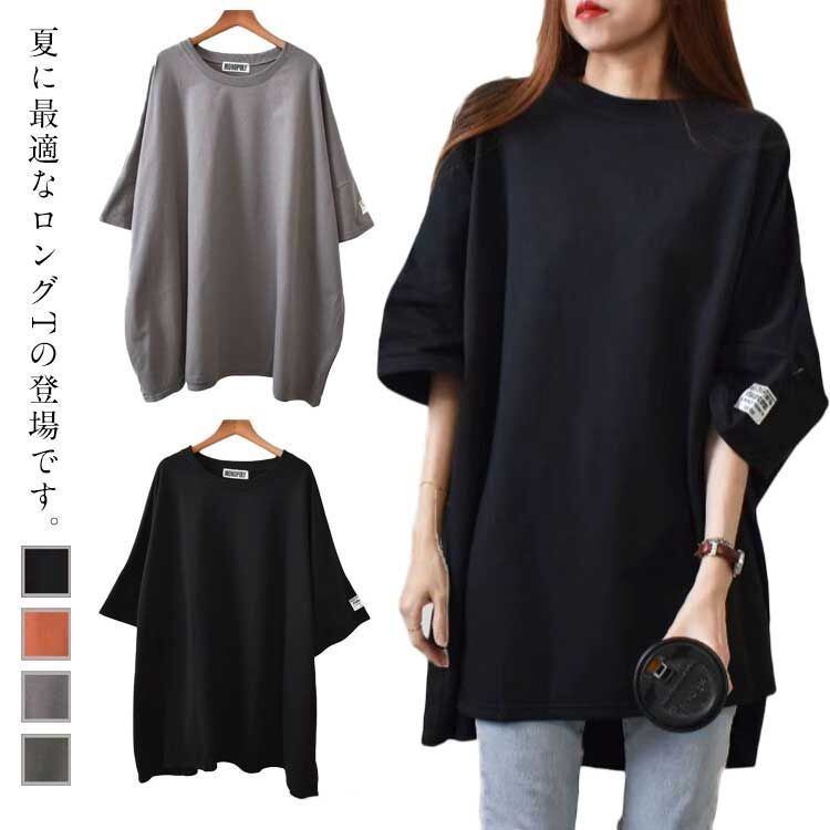 新品 レディース Tシャツ 半袖 ロングTシャツ ゆったり 大きいサイズ 春夏秋 トップス カットソー ビッグサイズ チュニック おしゃれ プルオーバー 無地 シンプル 体型カバー ママ 母 20代 30代 kkkmyl