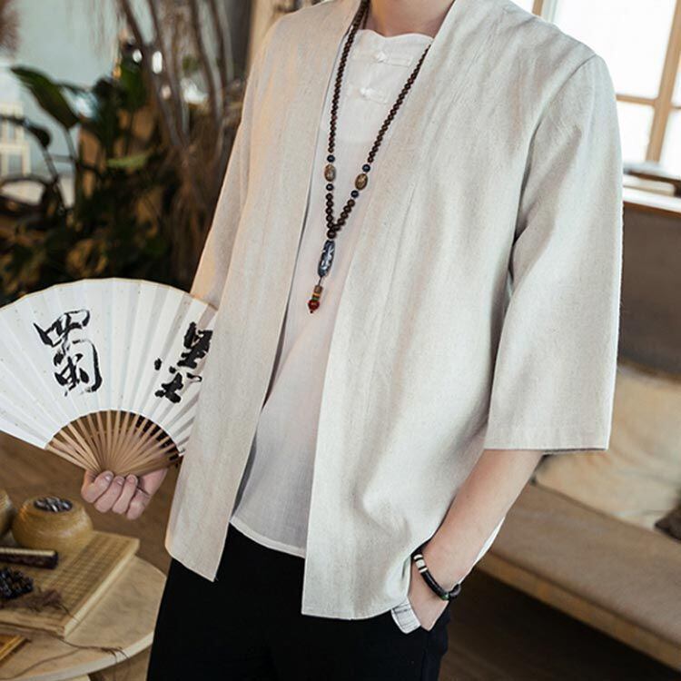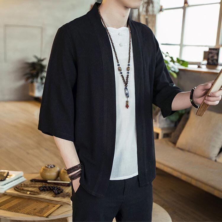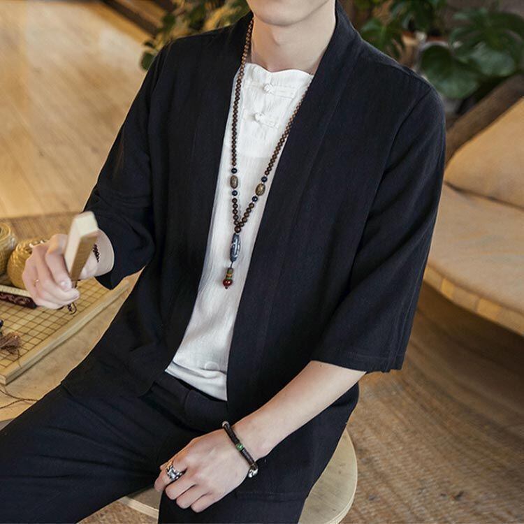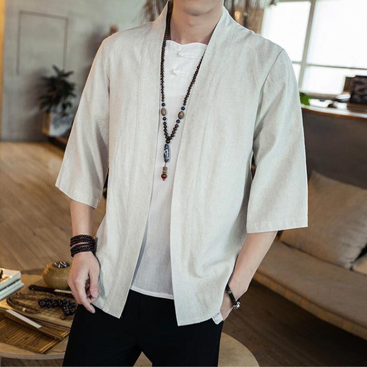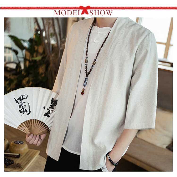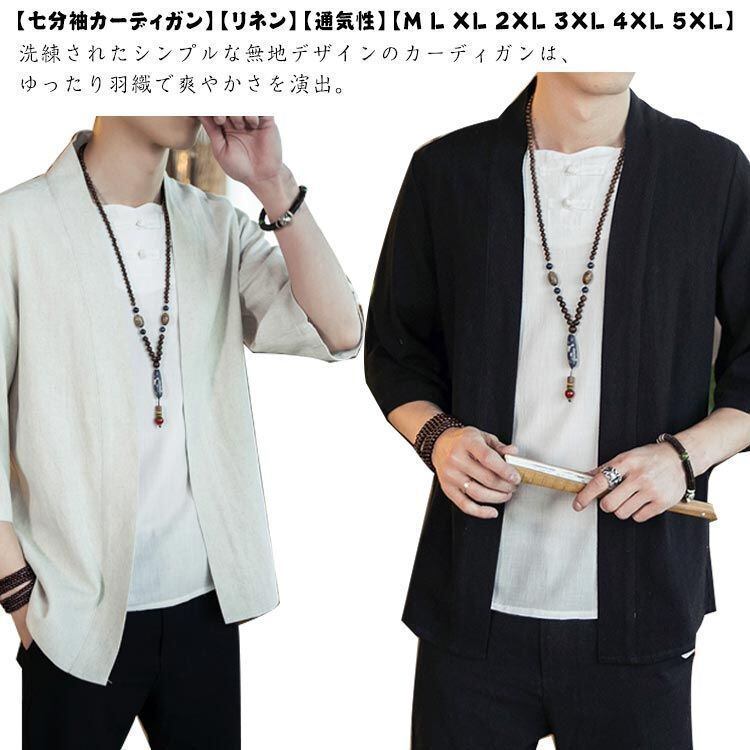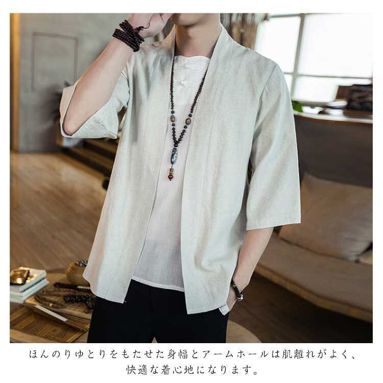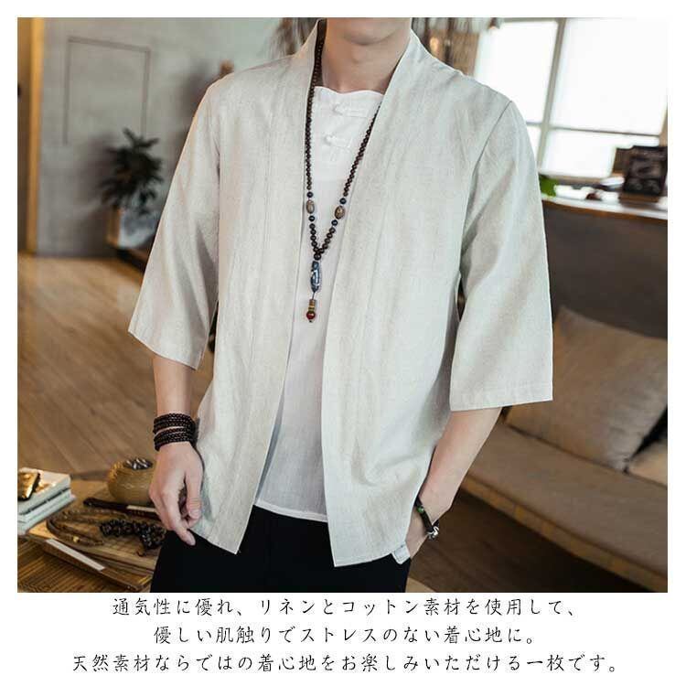 新品 リネン カーディガン メンズ 亜麻 七分袖 羽織り 和風 甚平 作務衣 半被 半纏 和服 着物 法被 春 夏 祭り シャツ 綿麻 コットンリネン 和式パーカー 無地 トップス M-4XL カジュアル kkkhso